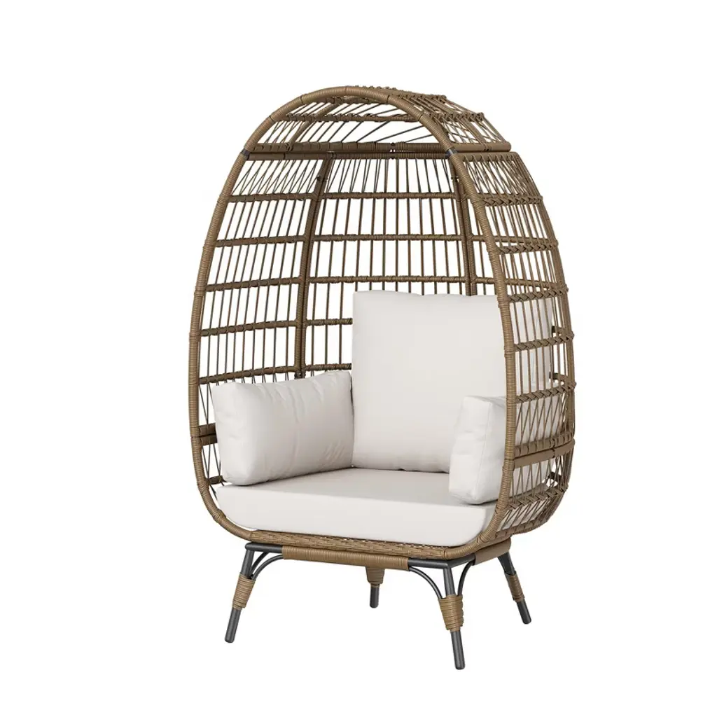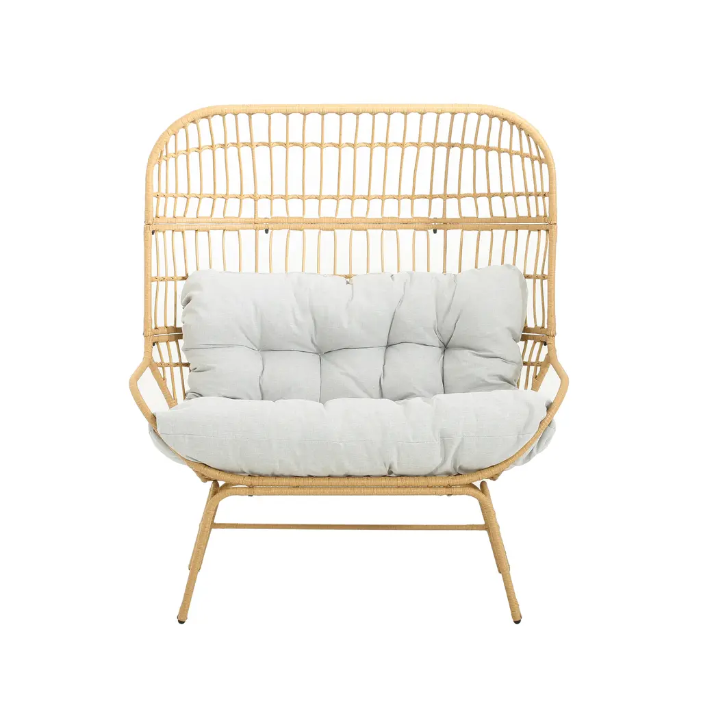 Outdoor Wicker Loveseat With Iron Frame And Seat Cushion