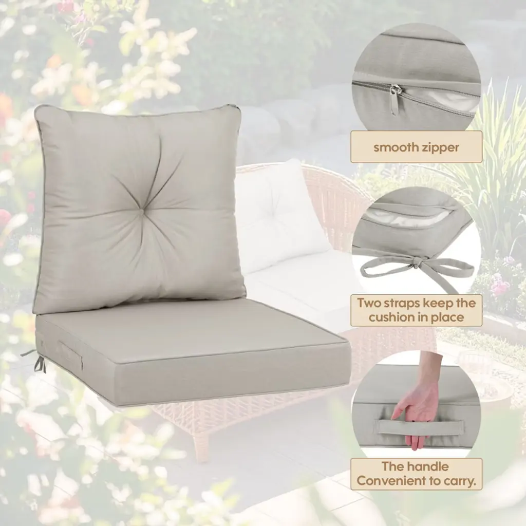 Paged Outdoor Deep Seat Cushion Set,24x 24 Inch,waterproof Fade-resistant Patio Furniture Cushions With Removable Covers,2 Set Of,beige