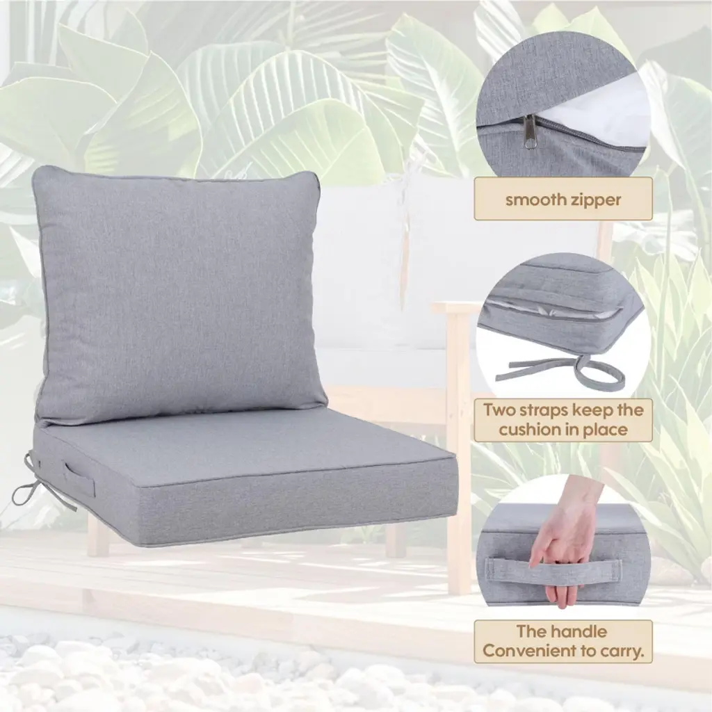 Paged Outdoor Deep Seat Cushion Set,24x 24 Inch,waterproof Fade-resistant Patio Furniture Cushions With Removable Covers,2pc,light Gray