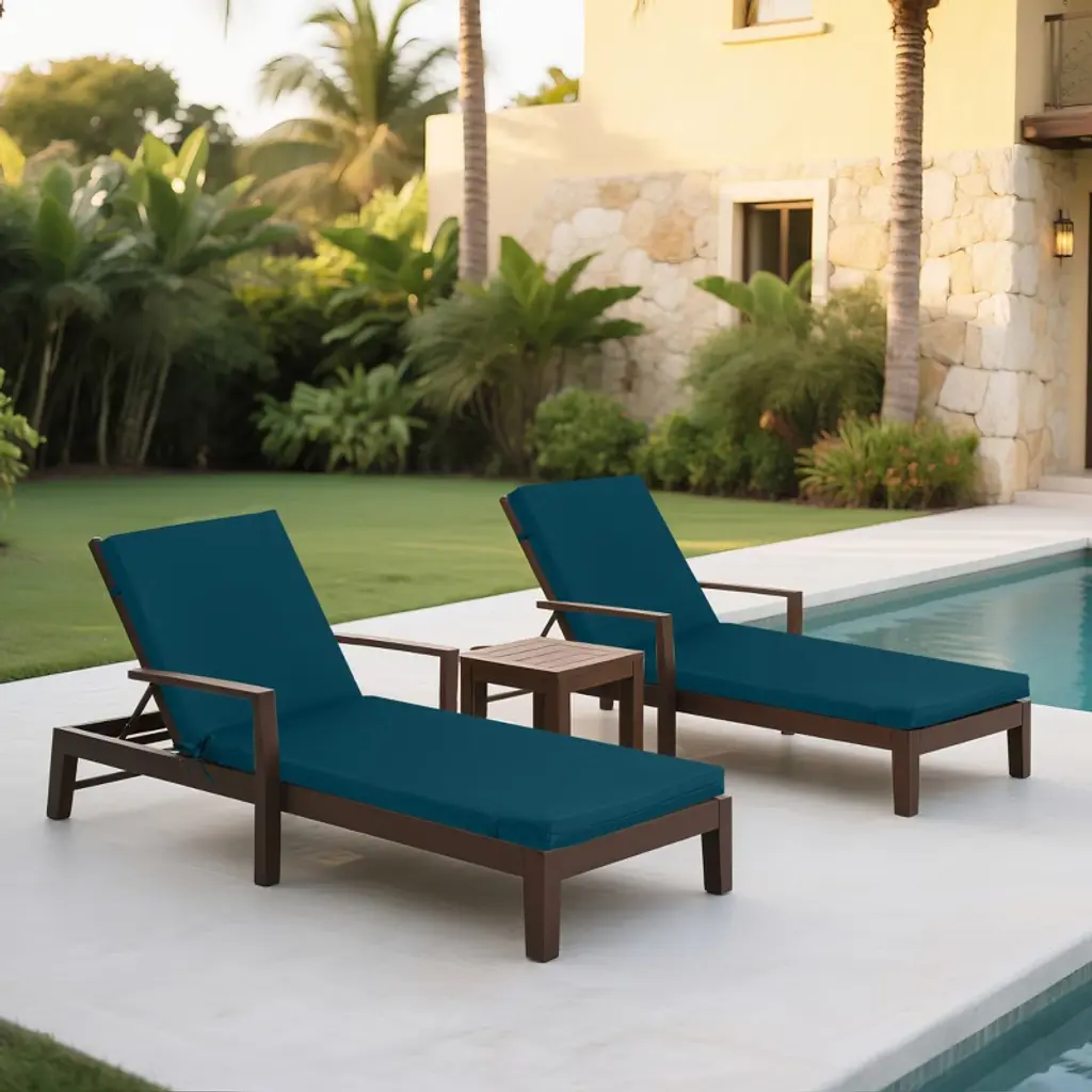 Outdoor lounge cushions feature all-weather fade-resistant fabric and removable zip-off covers for cloud-like comfort. Adjustable straps secure them to most chairs, while anti-slip anchors prevent shifting.Maintain easily with spot cleaning and air drying—effortless outdoor relaxation.