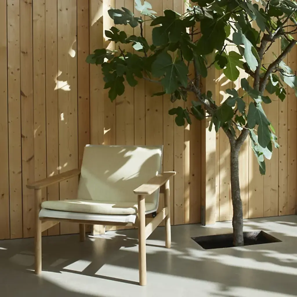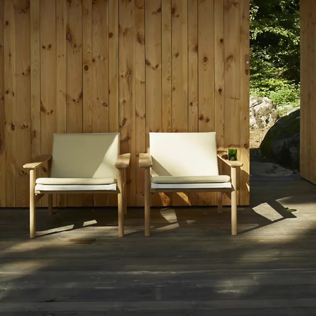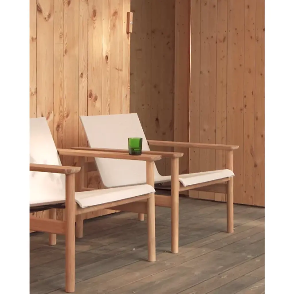 The Pelagus Outdoor Lounge Chair Cushion is custom-made for the Pelagus Outdoor Lounge Chair, enhancing comfort with added padding on the seat and back. Covered in durable, weatherproof Sunbrella woven fabric, the honey-yellow color contrasts beautifully with the new or aged teak to a silvery grey patina. The open-cell foam structure ensures water drains easily, maintaining its shape and firmness year after year, making it perfect for outdoor use.