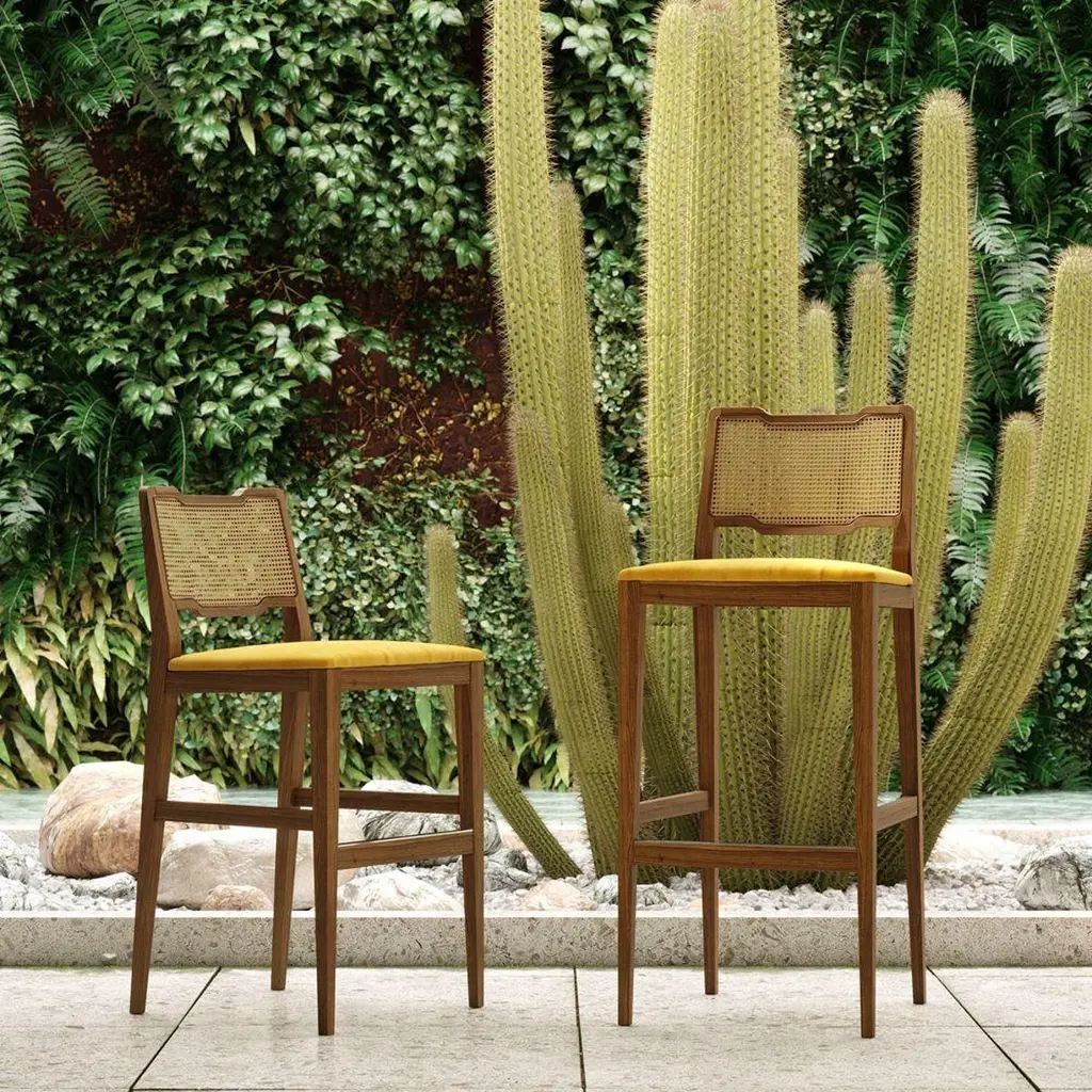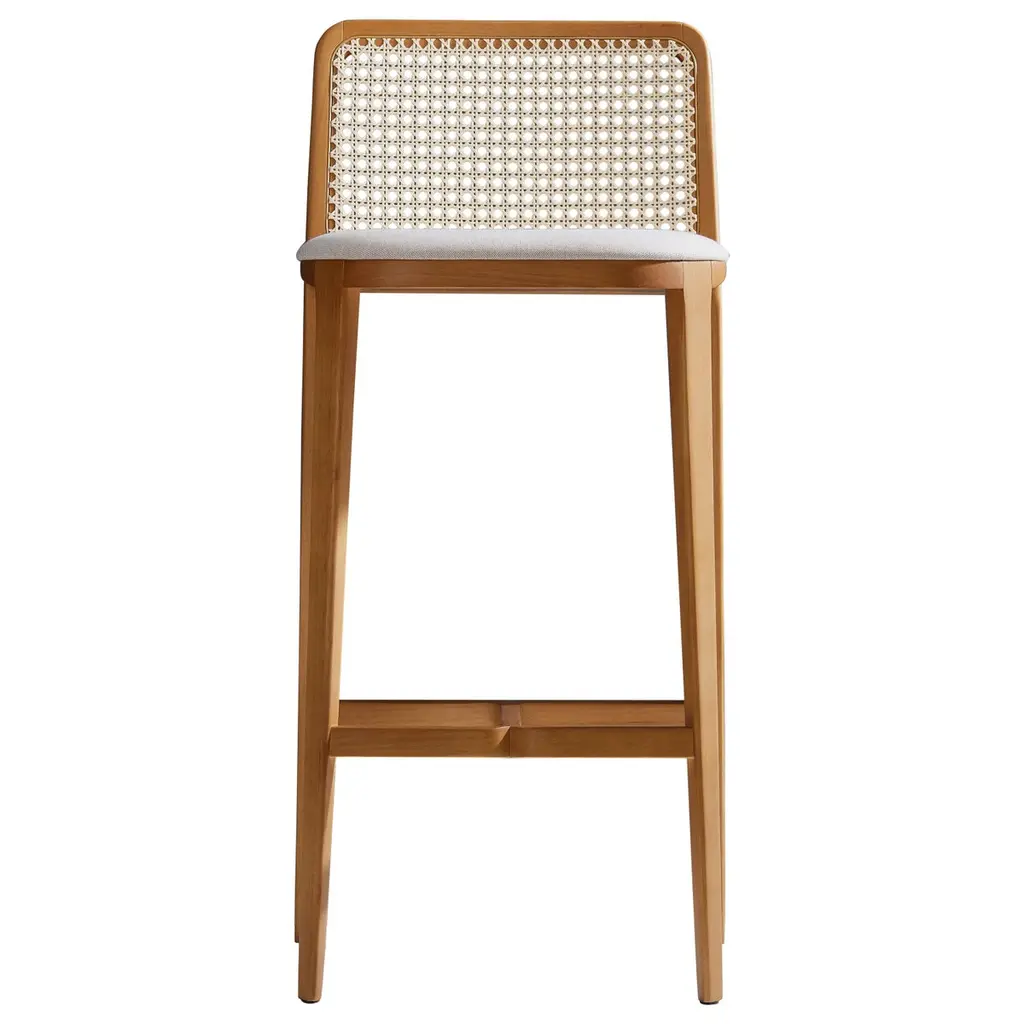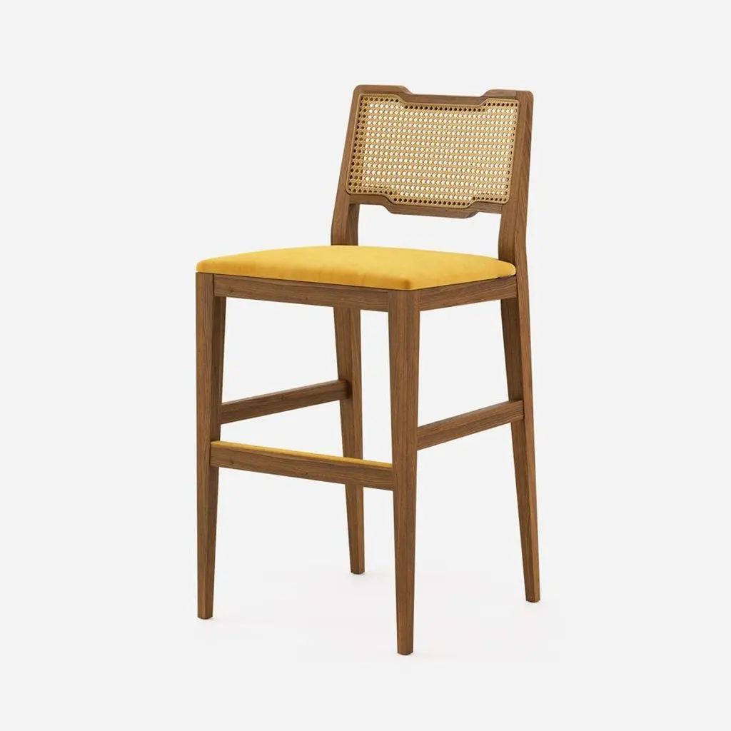 Made to last, the solid wood structure of this counter stool combines the perfect mix of a contemporary design with vintage twist. The detailed woven-work technique on the back promises to make a statement in any room as distinguished as it is. The upholstered seat makes sure of a comfortable experience while the gentle and soft lines guarantee this design is adaptable to any environment.Dimensions:Width 47 cm 18.51"Depth 46 cm 18.12"Height 110 cm 43.6"Seat Height 81 cm 32.38"Contact us to enquire about COM/COL production, requirements and material shipping instructions.We do our best to expedite production and to ship and deliver product within the listed lead time, however current lead times might be longer due to global shipping backlog and delays. These delays are out of our control and cannot be a reason to cancel an order.Our pricing includes all costs for international shipping to the U.S., as well as duties and customs clearance fees. Please be aware that local delivery within the U.S. is not included. We offer white glove, front door, and warehouse delivery options. For shipments outside the U.S., kindly reach out to us for a detailed quote.