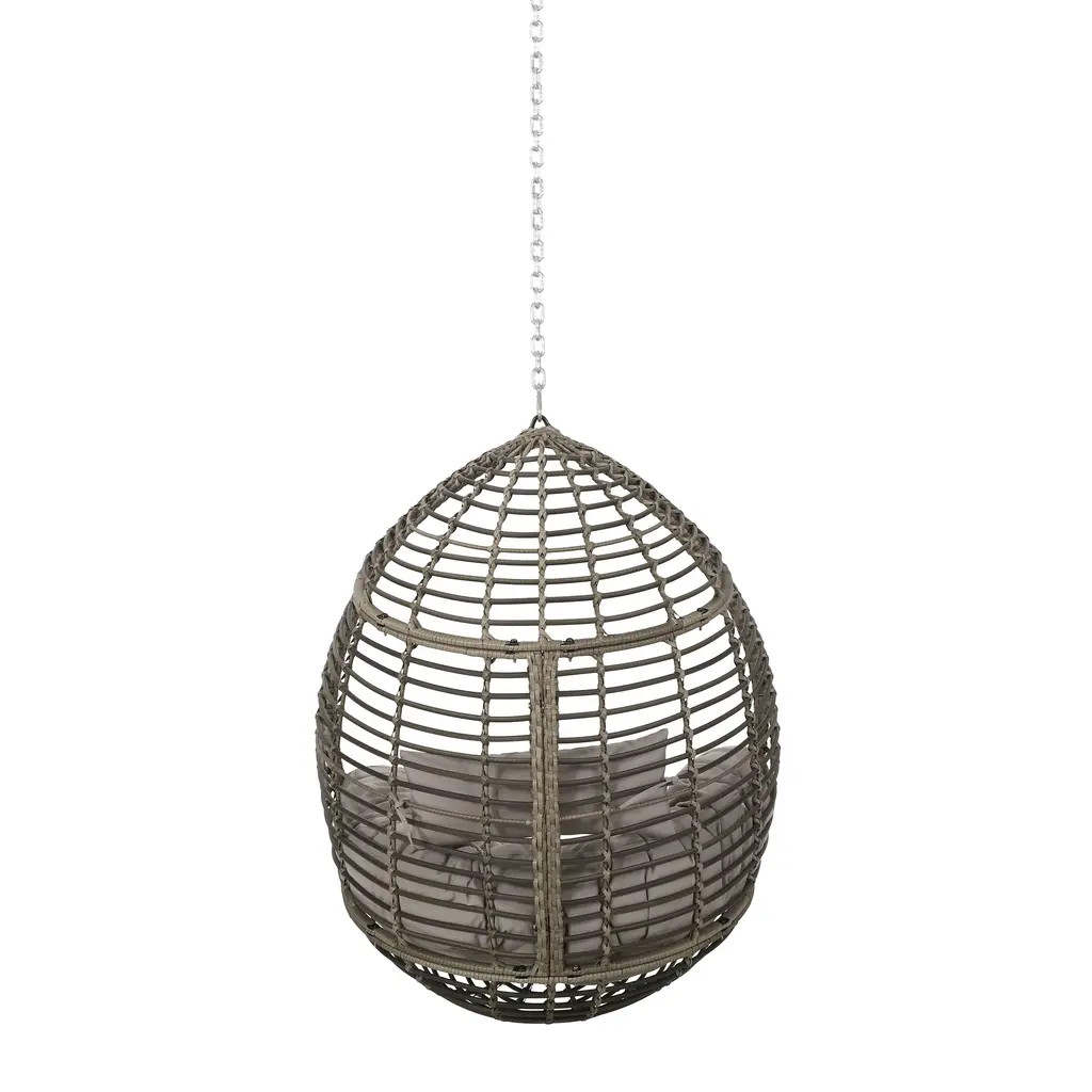 Transform your outdoor space with this hanging chair, featuring a charming teardrop shape for a cozy retreat. It includes an 8-foot suspension chain, allowing secure hanging with proper clearance from walls and obstacles. The durable polyethylene rattan weave adds a versatile touch, blending effortlessly with any outdoor decor. Plush, water-resistant cushions provide extra comfort while offering easy maintenance for everyday relaxation.
