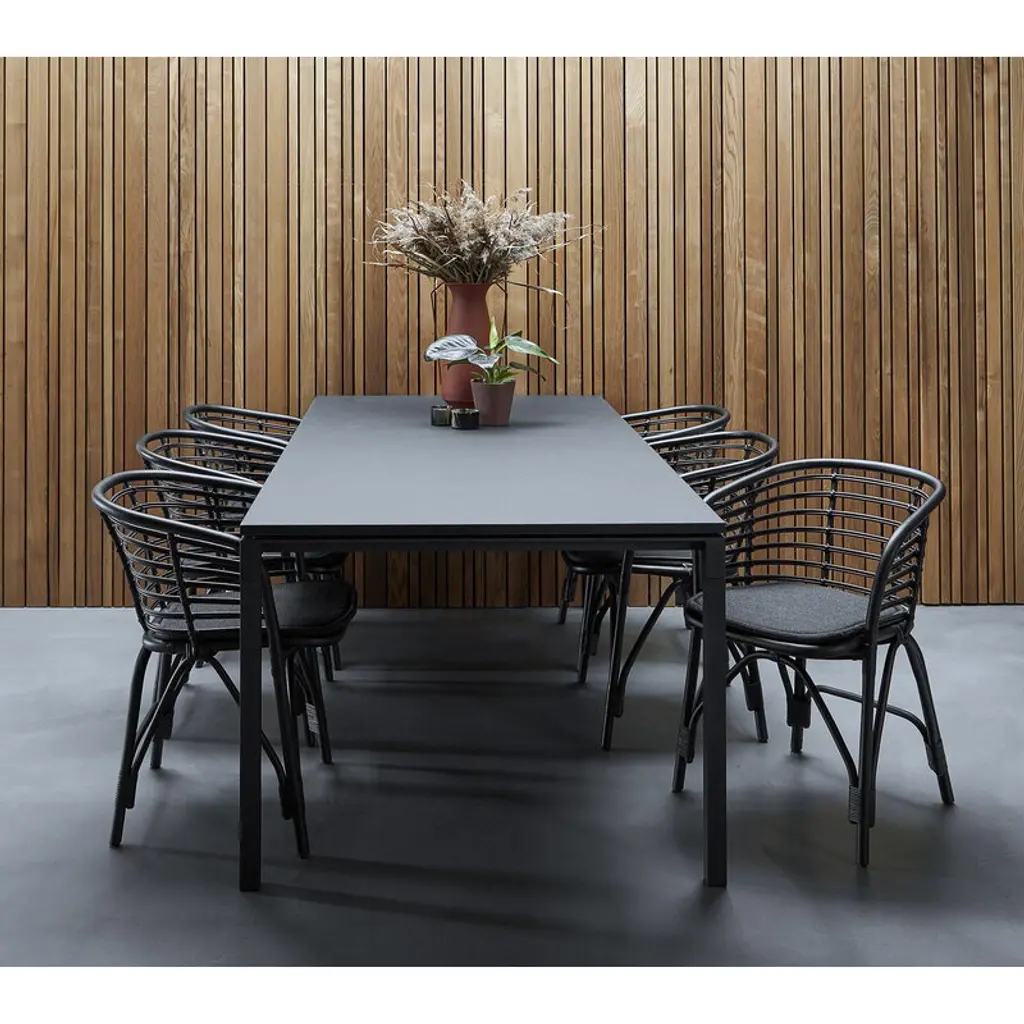 This seat cushion fits Cane-line's Moments and Blend chairs. The cushion is made of Cane-line's own Cane-line Natté polyethylene fabric, made by Sunbrella, which is designed to withstand both rain and shine. The fabric is dyed with the water and energy-saving Solution Dye technology, where the material is already dyed as fibers – the result is an even and durable color that requires significantly fewer chemicals than traditional color washing technology.