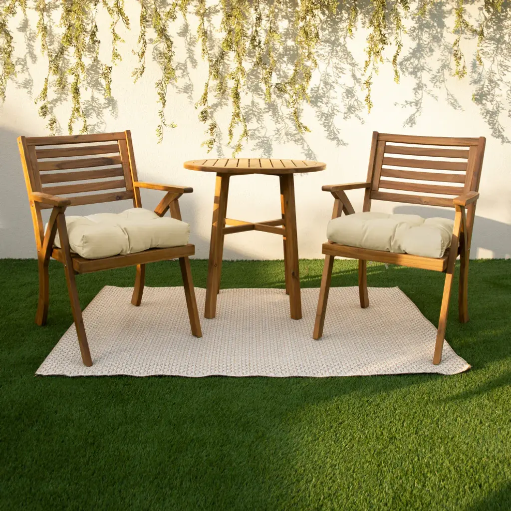 Refresh your outdoor seating with this versatile color tufted cushion. Featuring a stunning pattern fabric, this cushion with ties is sure to add comfort and style to any size space, from the porch to the patio. Crafted out of a strong, weather-resistant material right here in North America, this cushion is made to withstand wear and tear so all you have to do is sit back and relax! Sunbrella is founded on the belief that fabrics should be both beautiful and functional. We began in the 1960s with the challenge of creating an awning canvas with a substantially longer lifespan than cotton. Sunbrella has become widely adopted for shade structures, marine canvas and upholstery fabric for both outdoor and indoor applications.Our textiles are made with close attention to design detail, and engineered with robust performance characteristics that provide resistance to fading and degradation from sunlight and chemical exposure. The fabric is tactile yet durable, has industry-leading environmental characteristics, is easy to care for and offers long life, wherever it''s used.No Sunbrella manufacturing facility in the world sends waste to landfills. A result of our focus on efficiency, this monumental achievement allows Sunbrella to lead by example, putting sustainability into practice every day across the globe. Our unique coloring process not only makes Sunbrella fabrics fade-resistant, it also conserves more water than conventional dyeing processes. At Sunbrella we believe it''s important to preserve the environment around our facilities. We work to conserve the plant and animal life that is native to the area and encourage our employees to plant gardens designed to provide fresh food and nourish local wildlife.We stand behind our fabrics with a guarantee that''s the best in the industry: a 5-year limited warranty for upholstery. This warranty protects the original purchaser of Sunbrella fabric. This warranty protects against Sunbrella fabric becoming unserviceable due to color or strength loss from normal usage and exposure conditions, including sunlight, mildew and atmospheric chemicals.