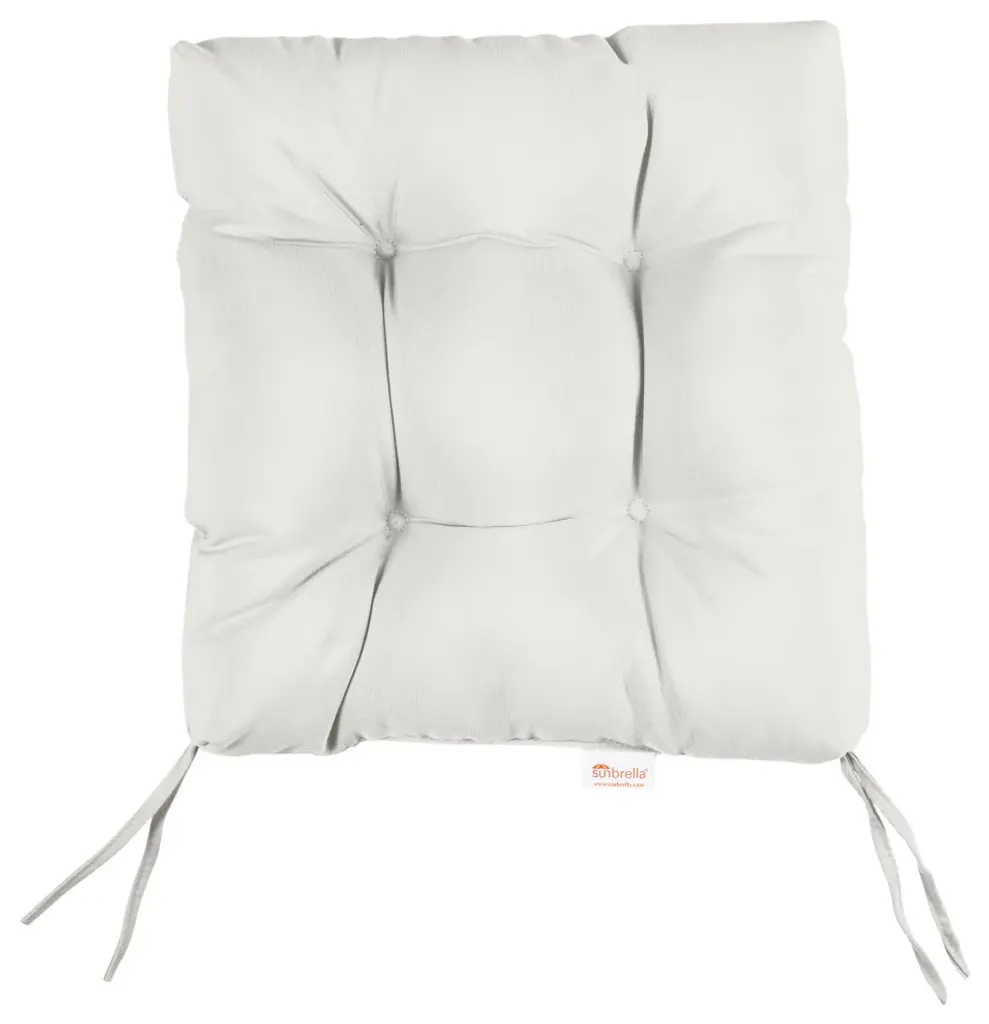 Refresh your outdoor seating with this versatile color tufted cushion. Featuring a stunning pattern fabric, this cushion with ties is sure to add comfort and style to any size space, from the porch to the patio. Crafted out of a strong, weather-resistant material right here in North America, this cushion is made to withstand wear and tear so all you have to do is sit back and relax! Sunbrella is founded on the belief that fabrics should be both beautiful and functional. We began in the 1960s with the challenge of creating an awning canvas with a substantially longer lifespan than cotton. Sunbrella has become widely adopted for shade structures, marine canvas and upholstery fabric for both outdoor and indoor applications.Our textiles are made with close attention to design detail, and engineered with robust performance characteristics that provide resistance to fading and degradation from sunlight and chemical exposure. The fabric is tactile yet durable, has industry-leading environmental characteristics, is easy to care for and offers long life, wherever it''s used.No Sunbrella manufacturing facility in the world sends waste to landfills. A result of our focus on efficiency, this monumental achievement allows Sunbrella to lead by example, putting sustainability into practice every day across the globe. Our unique coloring process not only makes Sunbrella fabrics fade-resistant, it also conserves more water than conventional dyeing processes. At Sunbrella we believe it''s important to preserve the environment around our facilities. We work to conserve the plant and animal life that is native to the area and encourage our employees to plant gardens designed to provide fresh food and nourish local wildlife.We stand behind our fabrics with a guarantee that''s the best in the industry: a 5-year limited warranty for upholstery. This warranty protects the original purchaser of Sunbrella fabric. This warranty protects against Sunbrella fabric becoming unserviceable due to color or strength loss from normal usage and exposure conditions, including sunlight, mildew and atmospheric chemicals.