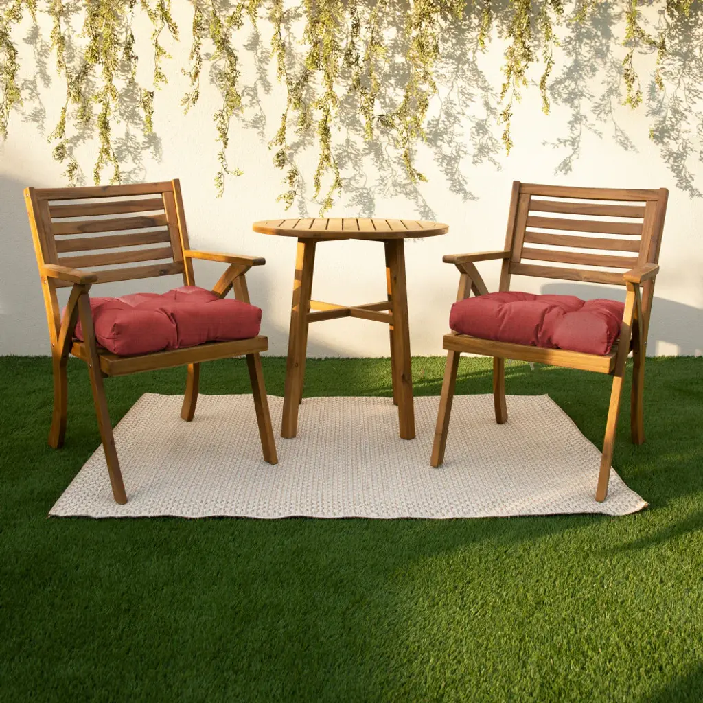 Refresh your outdoor seating with this versatile color tufted cushion. Featuring a stunning pattern fabric, this cushion with ties is sure to add comfort and style to any size space, from the porch to the patio. Crafted out of a strong, weather-resistant material right here in North America, this cushion is made to withstand wear and tear so all you have to do is sit back and relax! Sunbrella is founded on the belief that fabrics should be both beautiful and functional. We began in the 1960s with the challenge of creating an awning canvas with a substantially longer lifespan than cotton. Sunbrella has become widely adopted for shade structures, marine canvas and upholstery fabric for both outdoor and indoor applications.Our textiles are made with close attention to design detail, and engineered with robust performance characteristics that provide resistance to fading and degradation from sunlight and chemical exposure. The fabric is tactile yet durable, has industry-leading environmental characteristics, is easy to care for and offers long life, wherever it''s used.No Sunbrella manufacturing facility in the world sends waste to landfills. A result of our focus on efficiency, this monumental achievement allows Sunbrella to lead by example, putting sustainability into practice every day across the globe. Our unique coloring process not only makes Sunbrella fabrics fade-resistant, it also conserves more water than conventional dyeing processes. At Sunbrella we believe it''s important to preserve the environment around our facilities. We work to conserve the plant and animal life that is native to the area and encourage our employees to plant gardens designed to provide fresh food and nourish local wildlife.We stand behind our fabrics with a guarantee that''s the best in the industry: a 5-year limited warranty for upholstery. This warranty protects the original purchaser of Sunbrella fabric. This warranty protects against Sunbrella fabric becoming unserviceable due to color or strength loss from normal usage and exposure conditions, including sunlight, mildew and atmospheric chemicals.