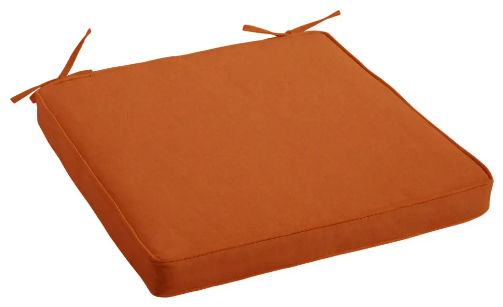 Step out on your porch or patio and start brightening it up with this beautiful new chair cushion! Featuring a stunning solid fabric in a rich, rust hue, this cushion will instantly enhance your space and help you comfortably enjoy the outdoors! Crafted out of a performance material right here in North America, this chair cushion is made to withstand the sun, rain and even stains so that all you have to do is sit back and relax! Sunbrella is founded on the belief that fabrics should be both beautiful and functional. We began in the 1960s with the challenge of creating an awning canvas with a substantially longer lifespan than cotton. Sunbrella has become widely adopted for shade structures, marine canvas and upholstery fabric for both outdoor and indoor applications.Our textiles are made with close attention to design detail, and engineered with robust performance characteristics that provide resistance to fading and degradation from sunlight and chemical exposure. The fabric is tactile yet durable, has industry-leading environmental characteristics, is easy to care for and offers long life wherever it''s used.No Sunbrella manufacturing facility in the world sends waste to landfills. A result of our focus on efficiency, this monumental achievement allows Sunbrella to lead by example, putting sustainability into practice every day across the globe. Our unique coloring process not only makes Sunbrella fabrics fade-resistant, it also conserves more water than conventional dyeing processes. At Sunbrella we believe it''s important to preserve the environment around our facilities. We work to conserve the plant and animal life that is native to the area and encourage our employees to plant gardens designed to provide fresh food and nourish local wildlife.We stand behind our fabrics with a guarantee that''s the best in the industry: a 5-year limited warranty for upholstery. This warranty protects the original purchaser of Sunbrella fabric. This warranty protects against Sunbrella fabric becoming unserviceable due to color or strength loss from normal usage and exposure conditions, including sunlight, mildew and atmospheric chemicals.• Ideal for casual indoor and outdoor use• Includes one (1) chair cushion• Cushion cover can be removed for easy cleaning• Available in a variety of sizes and colors to ensure that you find the perfect match for your furniture• Cushion only. Furniture not included.• • Made in North America•