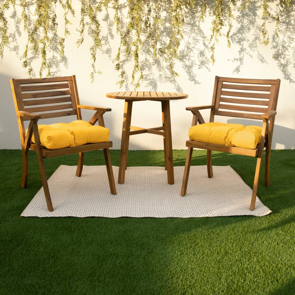 Refresh your outdoor seating with this versatile color tufted cushion. Featuring a stunning pattern fabric, this cushion with ties is sure to add comfort and style to any size space, from the porch to the patio. Crafted out of a strong, weather-resistant material right here in North America, this cushion is made to withstand wear and tear so all you have to do is sit back and relax! Sunbrella is founded on the belief that fabrics should be both beautiful and functional. We began in the 1960s with the challenge of creating an awning canvas with a substantially longer lifespan than cotton. Sunbrella has become widely adopted for shade structures, marine canvas and upholstery fabric for both outdoor and indoor applications.Our textiles are made with close attention to design detail, and engineered with robust performance characteristics that provide resistance to fading and degradation from sunlight and chemical exposure. The fabric is tactile yet durable, has industry-leading environmental characteristics, is easy to care for and offers long life, wherever it''s used.No Sunbrella manufacturing facility in the world sends waste to landfills. A result of our focus on efficiency, this monumental achievement allows Sunbrella to lead by example, putting sustainability into practice every day across the globe. Our unique coloring process not only makes Sunbrella fabrics fade-resistant, it also conserves more water than conventional dyeing processes. At Sunbrella we believe it''s important to preserve the environment around our facilities. We work to conserve the plant and animal life that is native to the area and encourage our employees to plant gardens designed to provide fresh food and nourish local wildlife.We stand behind our fabrics with a guarantee that''s the best in the industry: a 5-year limited warranty for upholstery. This warranty protects the original purchaser of Sunbrella fabric. This warranty protects against Sunbrella fabric becoming unserviceable due to color or strength loss from normal usage and exposure conditions, including sunlight, mildew and atmospheric chemicals.