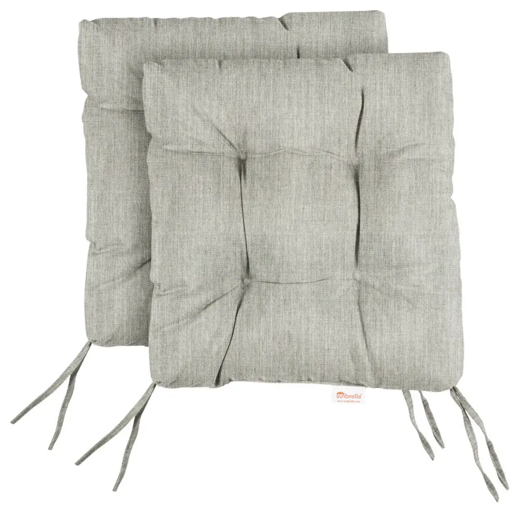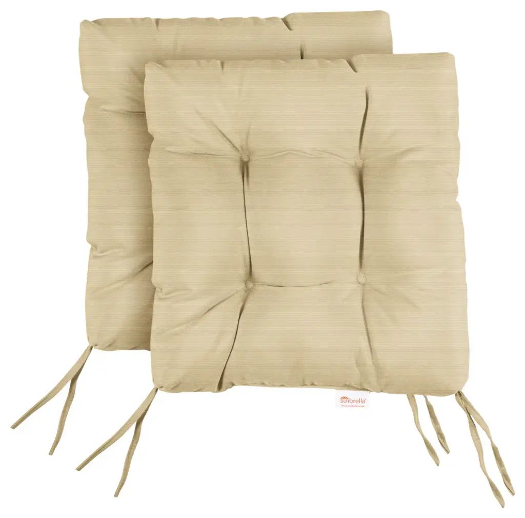 Refresh your outdoor seating with this versatile color tufted cushion. Featuring a stunning pattern fabric, this cushion with ties is sure to add comfort and style to any size space, from the porch to the patio. Crafted out of a strong, weather-resistant material right here in North America, this cushion is made to withstand wear and tear so all you have to do is sit back and relax! Sunbrella is founded on the belief that fabrics should be both beautiful and functional. We began in the 1960s with the challenge of creating an awning canvas with a substantially longer lifespan than cotton. Sunbrella has become widely adopted for shade structures, marine canvas and upholstery fabric for both outdoor and indoor applications.Our textiles are made with close attention to design detail, and engineered with robust performance characteristics that provide resistance to fading and degradation from sunlight and chemical exposure. The fabric is tactile yet durable, has industry-leading environmental characteristics, is easy to care for and offers long life, wherever it''s used.No Sunbrella manufacturing facility in the world sends waste to landfills. A result of our focus on efficiency, this monumental achievement allows Sunbrella to lead by example, putting sustainability into practice every day across the globe. Our unique coloring process not only makes Sunbrella fabrics fade-resistant, it also conserves more water than conventional dyeing processes. At Sunbrella we believe it''s important to preserve the environment around our facilities. We work to conserve the plant and animal life that is native to the area and encourage our employees to plant gardens designed to provide fresh food and nourish local wildlife.We stand behind our fabrics with a guarantee that''s the best in the industry: a 5-year limited warranty for upholstery. This warranty protects the original purchaser of Sunbrella fabric. This warranty protects against Sunbrella fabric becoming unserviceable due to color or strength loss from normal usage and exposure conditions, including sunlight, mildew and atmospheric chemicals.