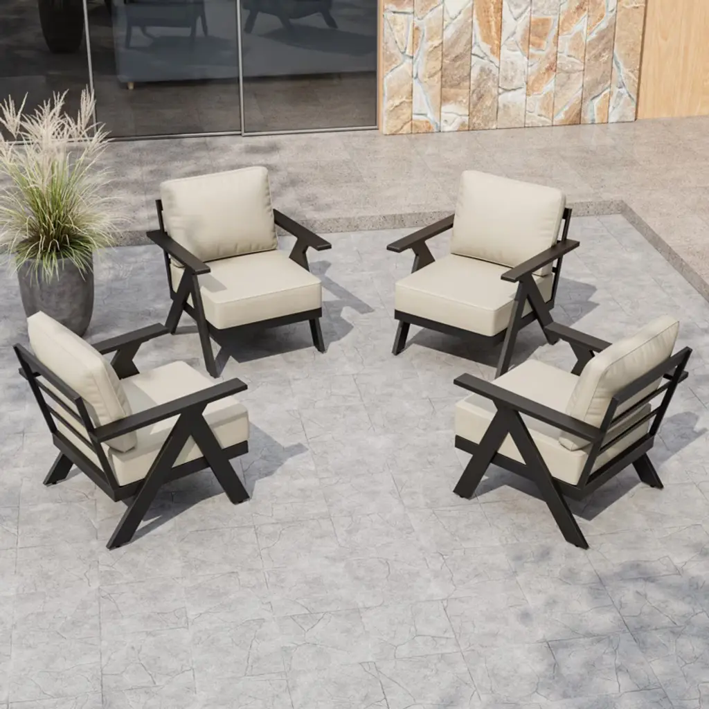 Durable for Outdoor Use:The overall design of the chair is simple, stable,elegant,Crafted with a rust resistant powder-coated steel frame,U-shaped structure with crossbar legs to increase the stability of the chairs,wrapped in flat and smooth weather-resistant PE rattan.The patio chairs are great for outdoor use. Deep-seating Design:The Deep-sitting chairs with long and wide armrests, ergonomic backrest, matched with comfortable 4-inch thick sponge-padded cushions,The cushions offers good resilience, not easy to deform or slide, also protect your lumbar and offer a comfortable sitting experience. Detachable Covers:The patio furniture cushions are covered in olefin fabric provides exceptional UV protection and water-repellant feature. The fabrics could dry very fast after sprinkling water coffee or juice. Come with a smooth zipper, Easy to replace and clean. Suitable for outdoor or indoor use:The patio dinning chairs weaved with popular dark and light gray,perfectly matching your patio , deck,lawn,or dinning room,You can also match the chairs with our same series patio furniture,for example sofa,ottomans,coffee table and end table. Easy to Assemble:The patio furniture set comes with clear assemble instruction and all needed tools,Each part is rectangular and the holes align very well, making it easy for one person to assemble.