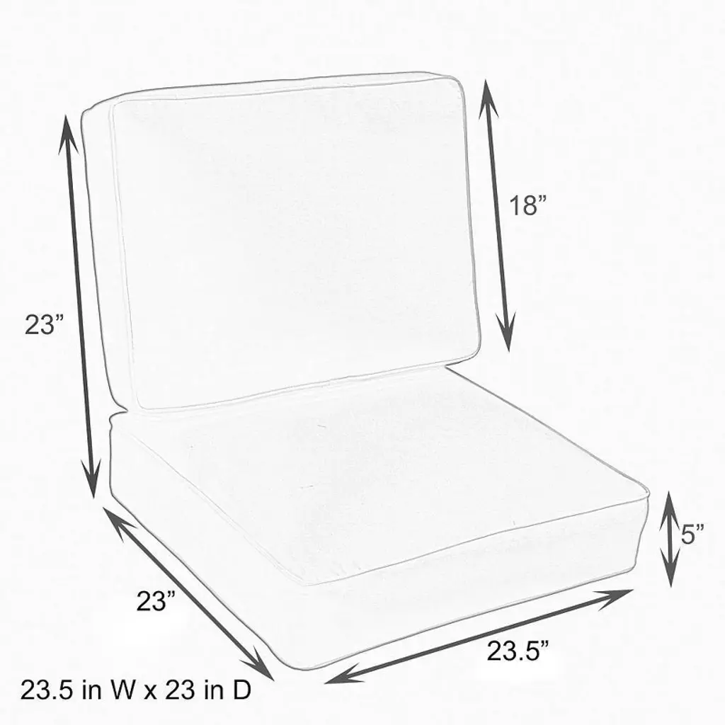 Revel in the graceful chic tone of this Sunbrella canvas rust indoor-outdoor loveseat set from Mozaic. The corded weather-, fade-, and UV-resistant fabric means you'll get years of enjoyable use. The deep orange coloration will add an earthy touch to your home or patio.Overall Chair Set Height: 23 inchesOverall Chair Set Width: 23.5 inchesOverall Chair Set Depth: 23 inchesBack Cushion Width: 23.5 inchesBack Cushion Height: 18 inchesBack Cushion Depth: 5 inchesSeat Cushion Width: 23.5 inchesSeat Cushion Depth: 23 inchesSeat Cushion Height: 5 inches