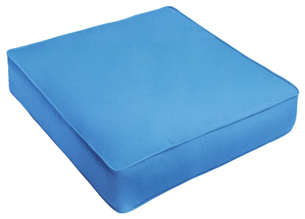 Step out on your porch or patio and start brightening it up with this beautiful new chair cushion! Featuring a stunning solid fabric in a rich, blue hue, this cushion will instantly enhance your space and help you comfortably enjoy the outdoors! Crafted out of a performance material right here in North America, this chair cushion is made to withstand the sun, rain and even stains so that all you have to do is sit back and relax! Sunbrella is founded on the belief that fabrics should be both beautiful and functional. We began in the 1960s with the challenge of creating an awning canvas with a substantially longer lifespan than cotton. Sunbrella has become widely adopted for shade structures, marine canvas and upholstery fabric for both outdoor and indoor applications.Our textiles are made with close attention to design detail, and engineered with robust performance characteristics that provide resistance to fading and degradation from sunlight and chemical exposure. The fabric is tactile yet durable, has industry-leading environmental characteristics, is easy to care for and offers long life wherever it''s used.No Sunbrella manufacturing facility in the world sends waste to landfills. A result of our focus on efficiency, this monumental achievement allows Sunbrella to lead by example, putting sustainability into practice every day across the globe. Our unique coloring process not only makes Sunbrella fabrics fade-resistant, it also conserves more water than conventional dyeing processes. At Sunbrella we believe it''s important to preserve the environment around our facilities. We work to conserve the plant and animal life that is native to the area and encourage our employees to plant gardens designed to provide fresh food and nourish local wildlife.We stand behind our fabrics with a guarantee that''s the best in the industry: a 5-year limited warranty for upholstery. This warranty protects the original purchaser of Sunbrella fabric. This warranty protects against Sunbrella fabric becoming unserviceable due to color or strength loss from normal usage and exposure conditions, including sunlight, mildew and atmospheric chemicals.• Ideal for casual indoor and outdoor use• Includes four (4) chair cushions• Cushion cover can be removed for easy cleaning• Available in a variety of sizes and colors to ensure that you find the perfect match for your furniture• Cushion only. Furniture not included.• • Made in North America•
