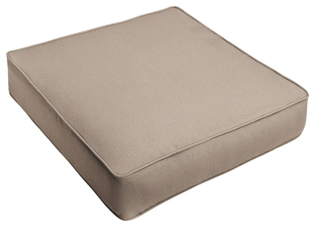 Step out on your porch or patio and start brightening it up with this beautiful new chair cushion! Featuring a stunning solid fabric in a rich, tan hue, this cushion will instantly enhance your space and help you comfortably enjoy the outdoors! Crafted out of a performance material right here in North America, this chair cushion is made to withstand the sun, rain and even stains so that all you have to do is sit back and relax! Sunbrella is founded on the belief that fabrics should be both beautiful and functional. We began in the 1960s with the challenge of creating an awning canvas with a substantially longer lifespan than cotton. Sunbrella has become widely adopted for shade structures, marine canvas and upholstery fabric for both outdoor and indoor applications.Our textiles are made with close attention to design detail, and engineered with robust performance characteristics that provide resistance to fading and degradation from sunlight and chemical exposure. The fabric is tactile yet durable, has industry-leading environmental characteristics, is easy to care for and offers long life wherever it''s used.No Sunbrella manufacturing facility in the world sends waste to landfills. A result of our focus on efficiency, this monumental achievement allows Sunbrella to lead by example, putting sustainability into practice every day across the globe. Our unique coloring process not only makes Sunbrella fabrics fade-resistant, it also conserves more water than conventional dyeing processes. At Sunbrella we believe it''s important to preserve the environment around our facilities. We work to conserve the plant and animal life that is native to the area and encourage our employees to plant gardens designed to provide fresh food and nourish local wildlife.We stand behind our fabrics with a guarantee that''s the best in the industry: a 5-year limited warranty for upholstery. This warranty protects the original purchaser of Sunbrella fabric. This warranty protects against Sunbrella fabric becoming unserviceable due to color or strength loss from normal usage and exposure conditions, including sunlight, mildew and atmospheric chemicals.• Ideal for casual indoor and outdoor use• Includes four (4) chair cushions• Cushion cover can be removed for easy cleaning• Available in a variety of sizes and colors to ensure that you find the perfect match for your furniture• Cushion only. Furniture not included.• • Made in North America•