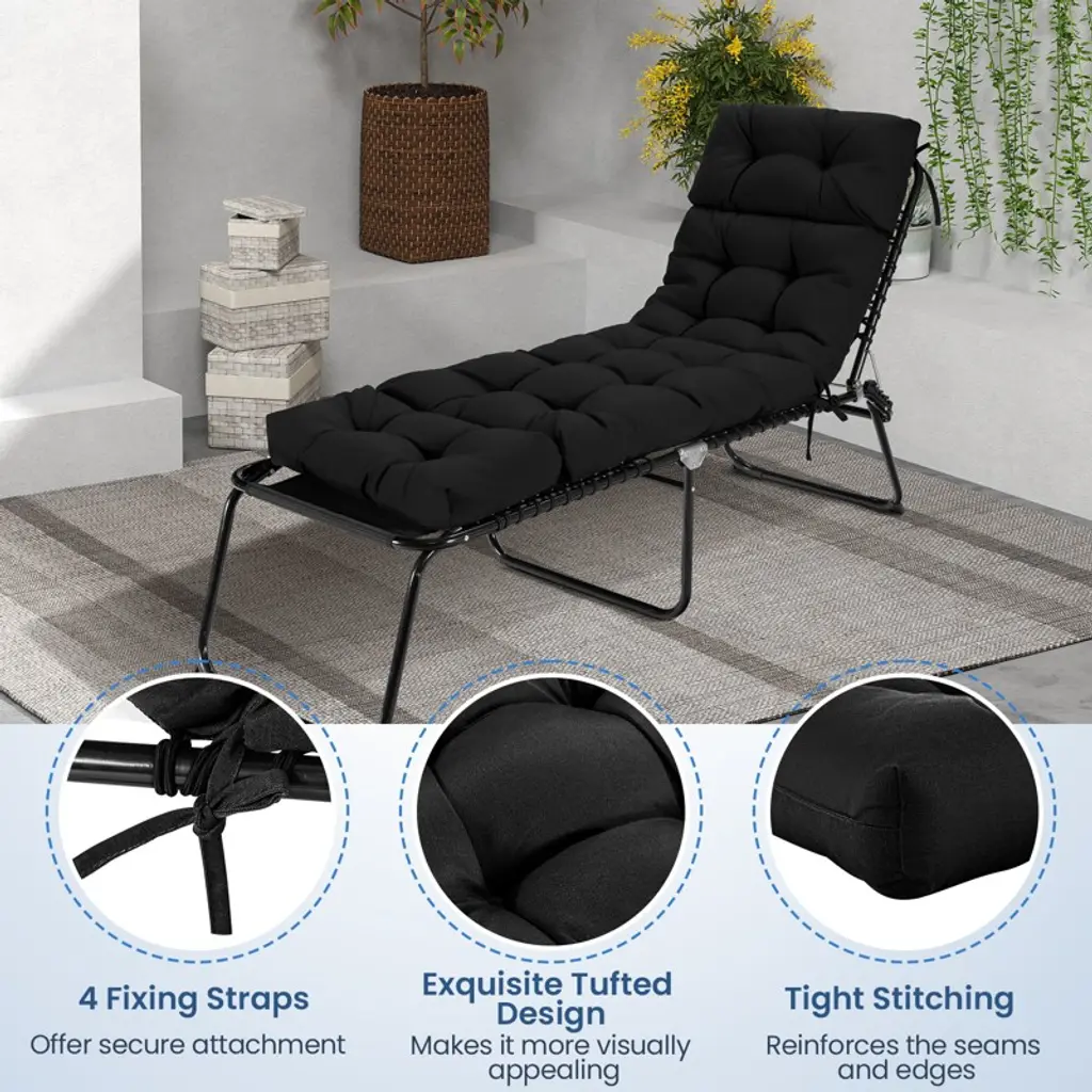 Tangkula 2Pcs Lounge Chair Cushion 73 X 22 Inch High Back Recliner Cushion With 4 Fixing Ties Black