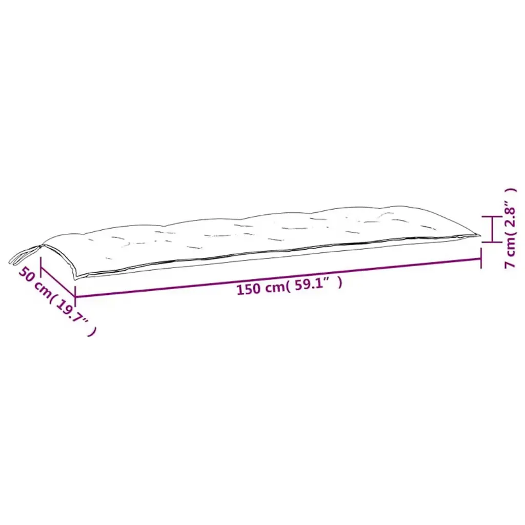 Upgrade your outdoor seating with this comfortable and stylish bench cushion, designed to enhance your patio, garden, or balcony furniture. Crafted from durable oxford fabric, this cushion is water-repellent, making it ideal for outdoor use and easy to maintain. The tufted design with stitched buttons adds a plush, inviting look while providing extra comfort for relaxing outdoors. Key Features • Water-repellent oxford fabric for long-lasting outdoor use • Plush tufted design with stitched buttons for added comfort • Four fabric ties at each corner to securely attach the cushion to your bench • Easy to clean and maintain Available Sizes • 39.4" • 47.2" • 59.1" • 70.9" • 78.7" Available Colors • Anthracite • Beige • Black • Black and white • Blue • Blue and white • Bright green • Cream • Gray • Green • Leaf pattern • Light blue • Multicolor • Pink • Red • Taupe • Turquoise • White and green • Wine red Why Choose This Outdoor Bench Cushion? • Adds comfort and style to any outdoor bench • Designed to withstand the elements with water-repellent fabric • Multiple sizes and colors to match your outdoor décor • Simple to secure and remove for cleaning or storage Refresh your outdoor living space and enjoy relaxing moments with this versatile and attractive bench cushion, available in a wide range of sizes and colors to suit your needs.