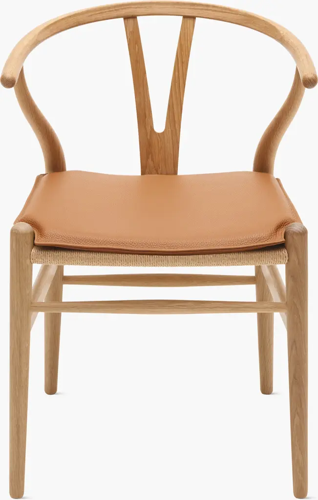 The Wishbone Chair (1949), also known as the “Y" or “CH-24," has been produced by the Danish firm Carl Hansen & Søn since 1950. Comprising a steam-bent solid wood frame and a seat handwoven from paper cord, the original Wishbone is made to last for generations and offers outstanding sitting comfort, with or without this optional leather seat cushion.