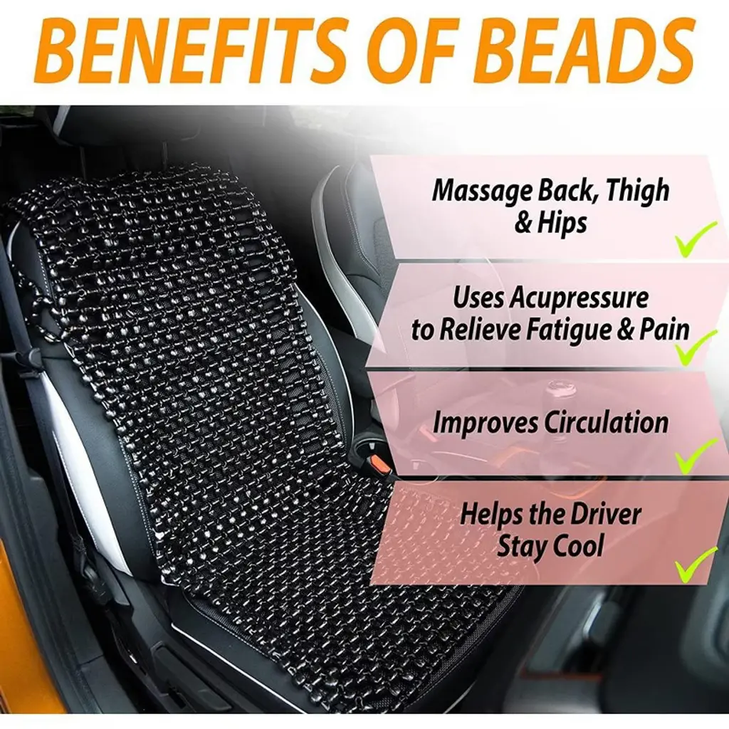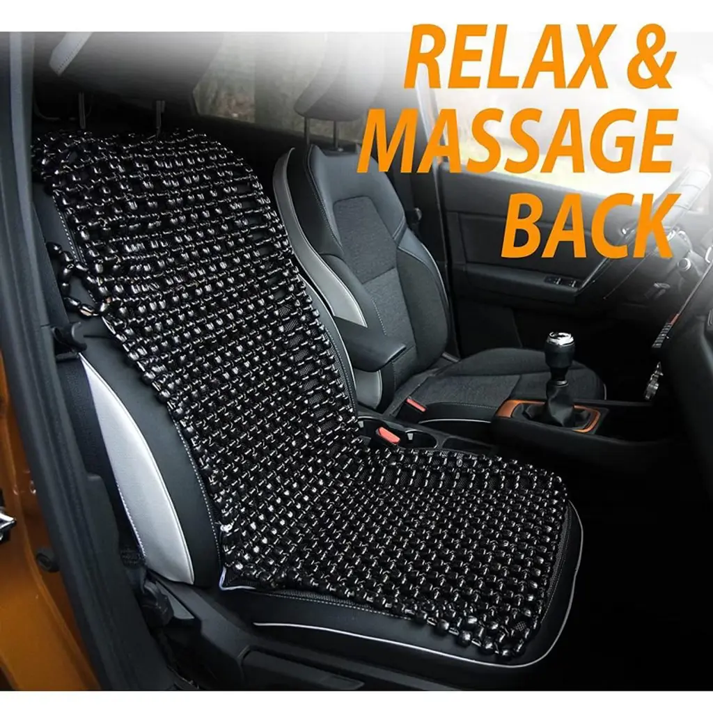 Zone Tech Black Wooden Beaded Comfort Seat Cover - 2 Pack Car Driver Massaging Cool Comfortable Seat Cushion With High Ventilation- Reduces Fatigue.