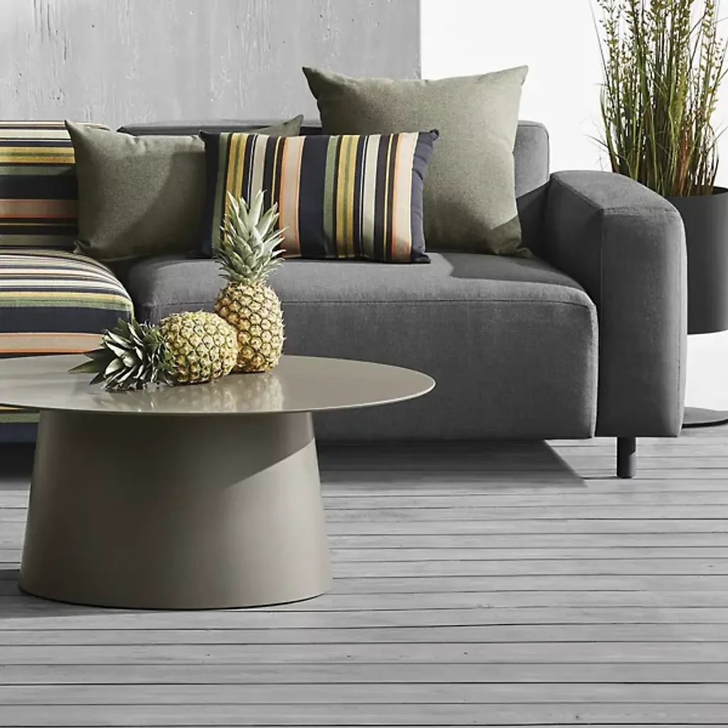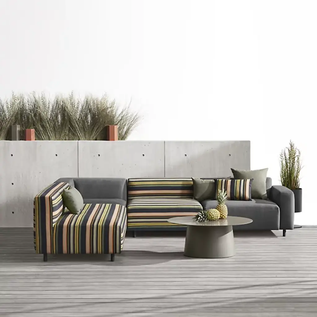 The 9 Yard Outdoor Modular Chair from Blu Dot brings comfort to the outdoors. Crafted for quality, this chair features upholstered fabric made of 100% acrylic, offering durability and easy maintenance. The dry-fast mildew-resistant foam fill facilitates relaxation and has a plush feel. Made with a sturdy aluminum frame, your chair is built to withstand the changes in outdoor weather conditions. Clean lines give this piece a minimalistic profile, combining mid-century modern charm with contemporary aesthetics.