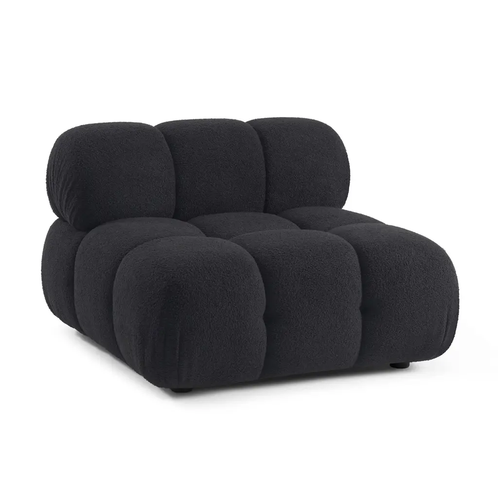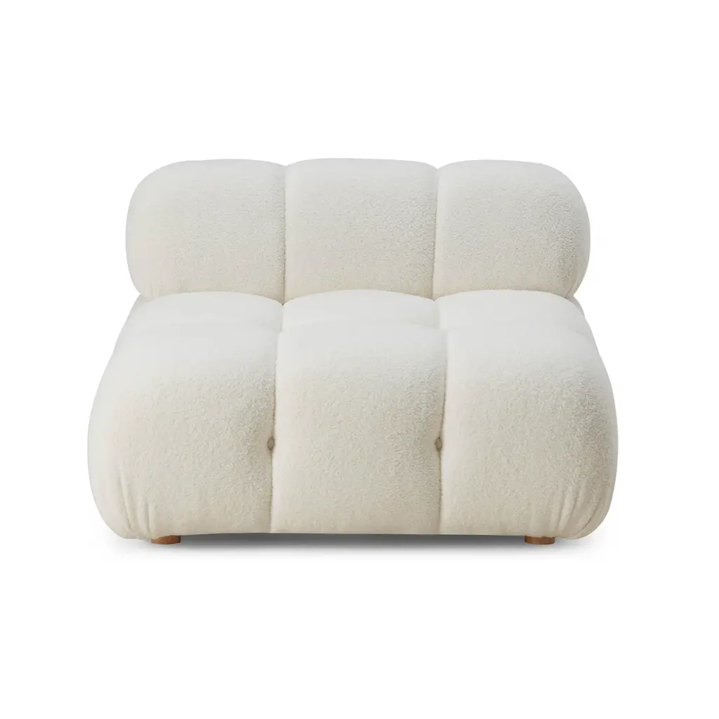 Introducing the Calliope Modular Collection, featuring ultra-soft upholstery that brings unmatched comfort. The deep hand-tufted structure creates the cushioning curves reminiscent of a brioche bun, enveloping you in a pillowy silhouette. With a modular layout allowing for endless configuration possibilities, the movable cushions add versatility, enabling you to customize your space easily. Available in cream vegan shearling and cafe au lait performance velvet options.
