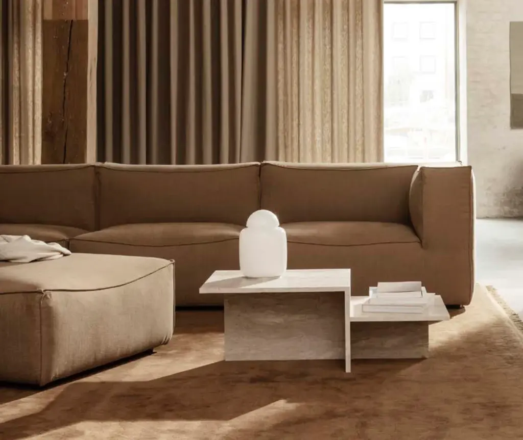 The embracing, beanbag-inspired shape of the low-slung Catena sofa is generously dimensioned for all-out relaxation and coziness: we call it ‘low living’. The name Catena is inspired by the catenary curve, a u-like shape that a chain or cable adopts when supported only at its ends, and which is mirrored in the soft curves and top-stitched seams of the Catena sofa. The homely, module-based designs are made with innovative microcellular foam that ensures maximum comfort as well as durability. The series is comprised of individual modules that can be combined in multiple ways to create the desired expression.