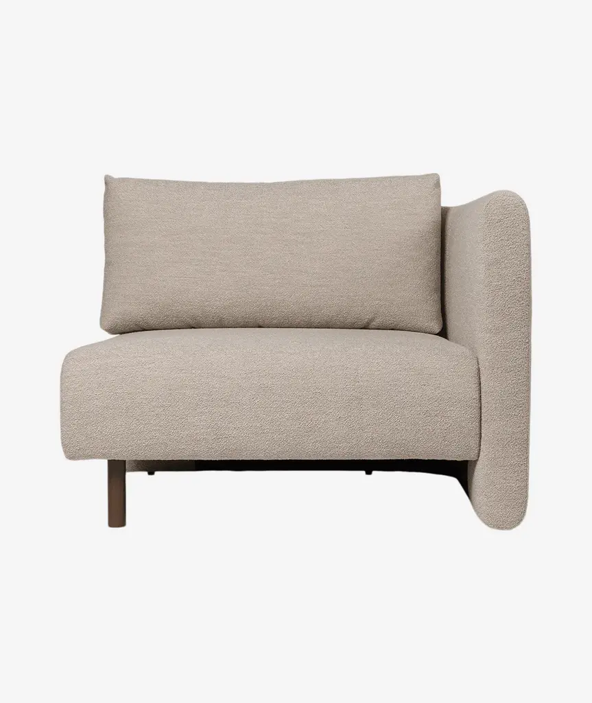 The Dase Sofa is a modular system designed with comfort and versatility in mind. This sofa offers enough space for resting, lounging, conversing and cuddling, making it ideal for both formal and informal settings. The sofa's design is highlighted by an upholstered backrest that gracefully follows the sofa's contours, accentuating its contemporary silhouette. Both the matching upholstered legs and the dark-stained wood legs are included, allowing you to choose between achieving a cohesive look or opting for a more subtle elegance. With a commitment to responsible production, the wooden structure of the Dase Sofa is FSC™ certified. As a part of the made-to-order customization concept, the upholstery for this item can be selected from a range of high-quality fabrics in different colors and patterns to create your custom piece of furniture.
