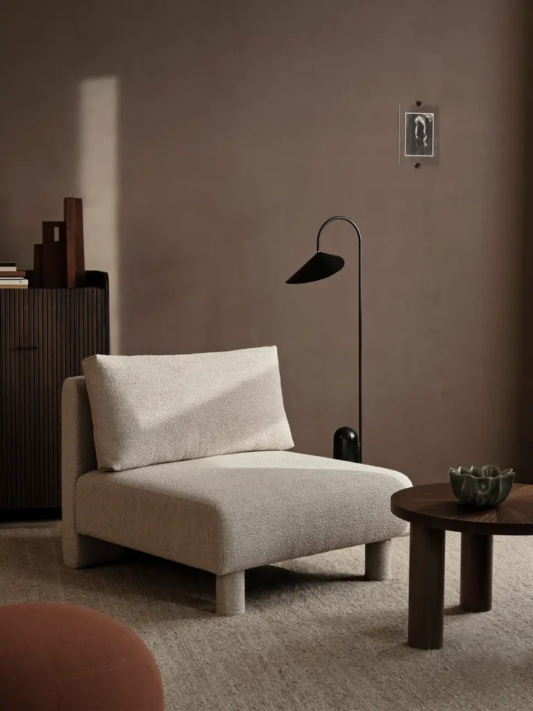 The Dase Sofa is a modular system designed with comfort and versatility in mind. This sofa offers enough space for resting, lounging, conversing and cuddling, making it ideal for both formal and informal settings. The sofa's design is highlighted by an upholstered backrest that gracefully follows the sofa's contours, accentuating its contemporary silhouette. Both the matching upholstered legs and the dark-stained wood legs are included, allowing you to choose between achieving a cohesive look or opting for a more subtle elegance. With a commitment to responsible production, the wooden structure of the Dase Sofa is FSC™ certified. As a part of the made-to-order customization concept, the upholstery for this item can be selected from a range of high-quality fabrics in different colors and patterns to create your custom piece of furniture.