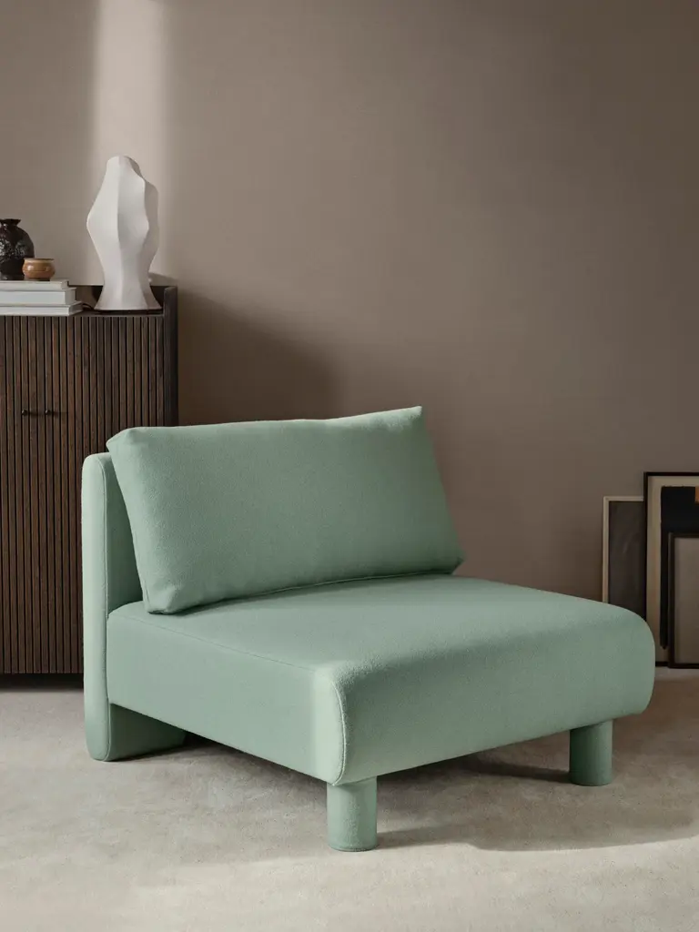 The Dase Sofa is a modular system designed with comfort and versatility in mind. This sofa offers enough space for resting, lounging, conversing and cuddling, making it ideal for both formal and informal settings. The sofa's design is highlighted by an upholstered backrest that gracefully follows the sofa's contours, accentuating its contemporary silhouette. Both the matching upholstered legs and the dark-stained wood legs are included, allowing you to choose between achieving a cohesive look or opting for a more subtle elegance. With a commitment to responsible production, the wooden structure of the Dase Sofa is FSC™ certified. As a part of the made-to-order customization concept, the upholstery for this item can be selected from a range of high-quality fabrics in different colors and patterns to create your custom piece of furniture.