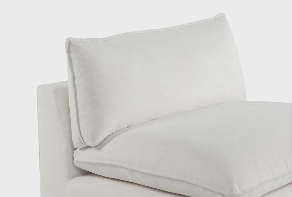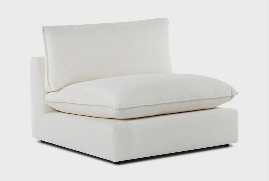 True to its name, our Getaway modular armless chair is destined to be your new favorite escape. Cloud-like seating combines foam and feather blend for irresistibly plush lounging, and the cushion is held in place by convenient seat clips that prevent shifting. Clean lines lend fresh modern style, while flexible modular design allows for small and large configuration options. Thanks to Crypton® Home Fabric, the upholstery is stain resistant, moisture resistant, odor resistant and easy to clean.