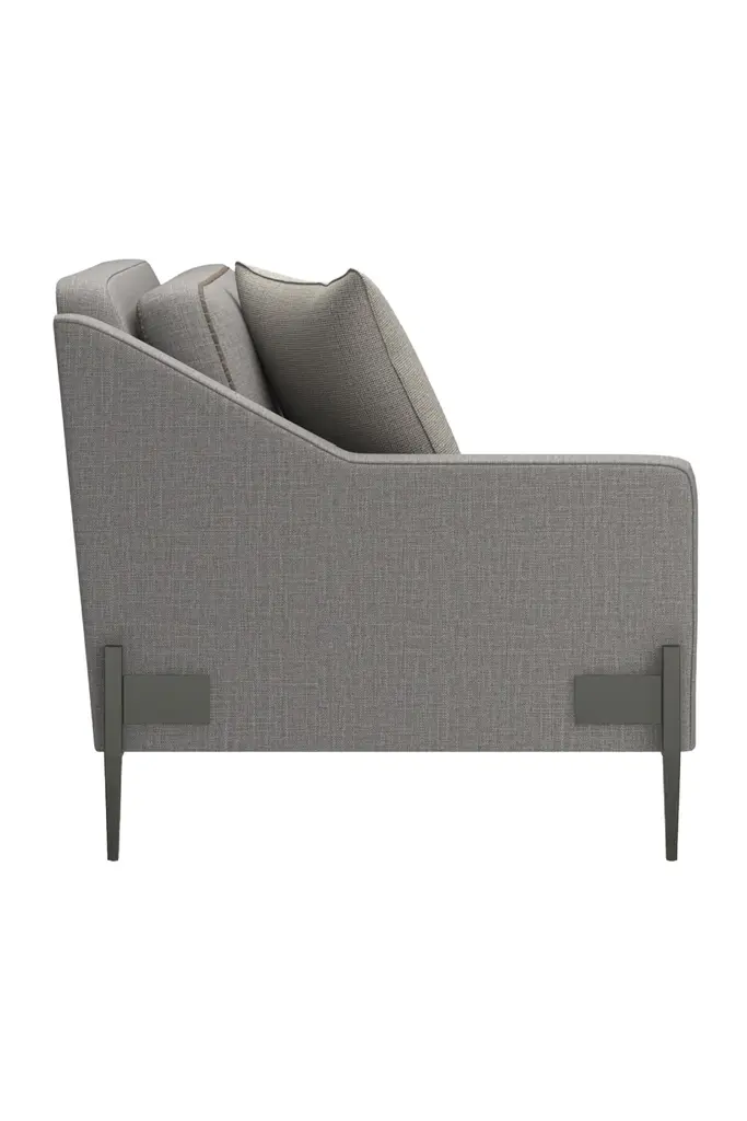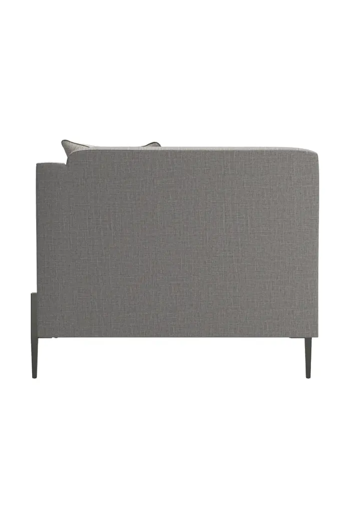 If an updated sectional is what you need for seating flexibility, we have a stylish piece that uses a mix of textural materials for classic appeal. Start with the Remix Sectional piece that affords a clean silhouette updated with a suspended frame, slim tapered metal legs, decorative leg brackets and loose seat and back Blendown cushions. A track arm is on the left side of the piece. This silhouette is upholstered in a grey wool blend woven with a contrasting tan leather welt.