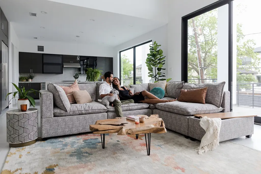 Come home to the world's most comfortable sofa. Kova’s feather blend seat cushions provide cloud-soft comfort for sink-in lounging. Combine Kova’s modular pieces to create endless configurations to fit your space and your lifestyle. Arrives quickly in easy-to-move boxes intentionally designed to maneuver through tight spaces. Assembles easily without any tools.