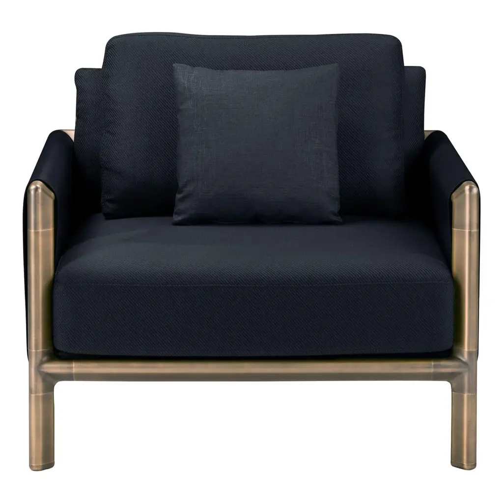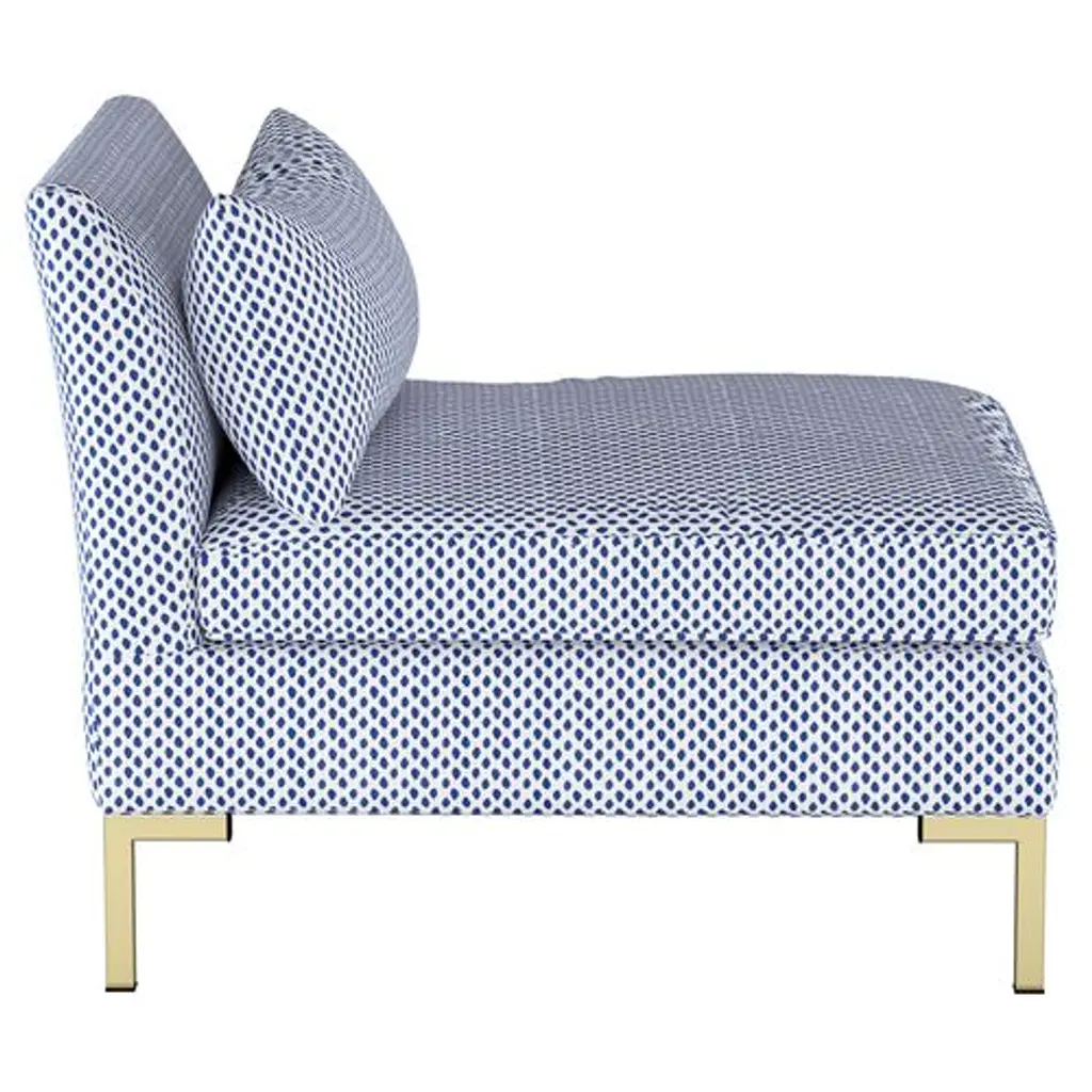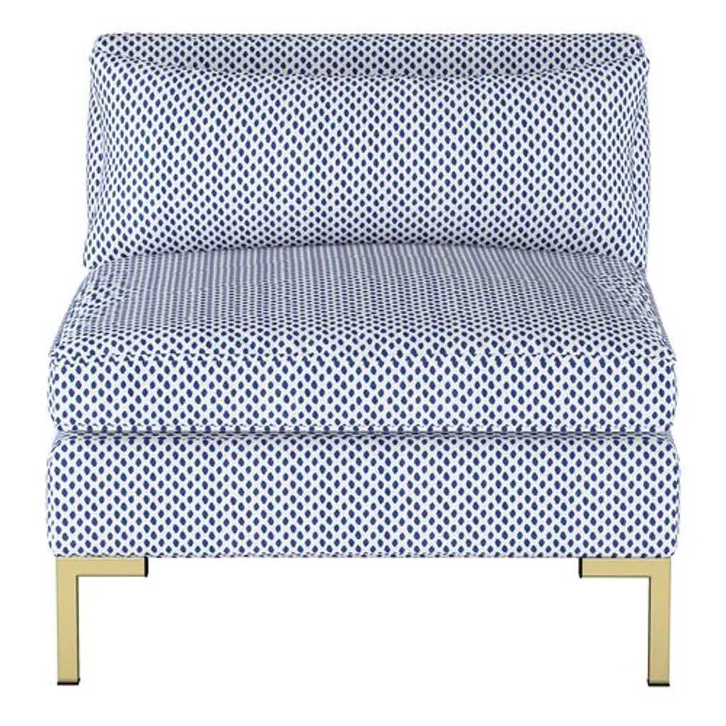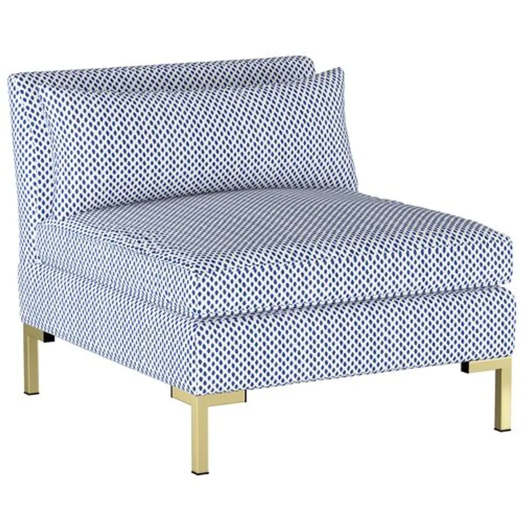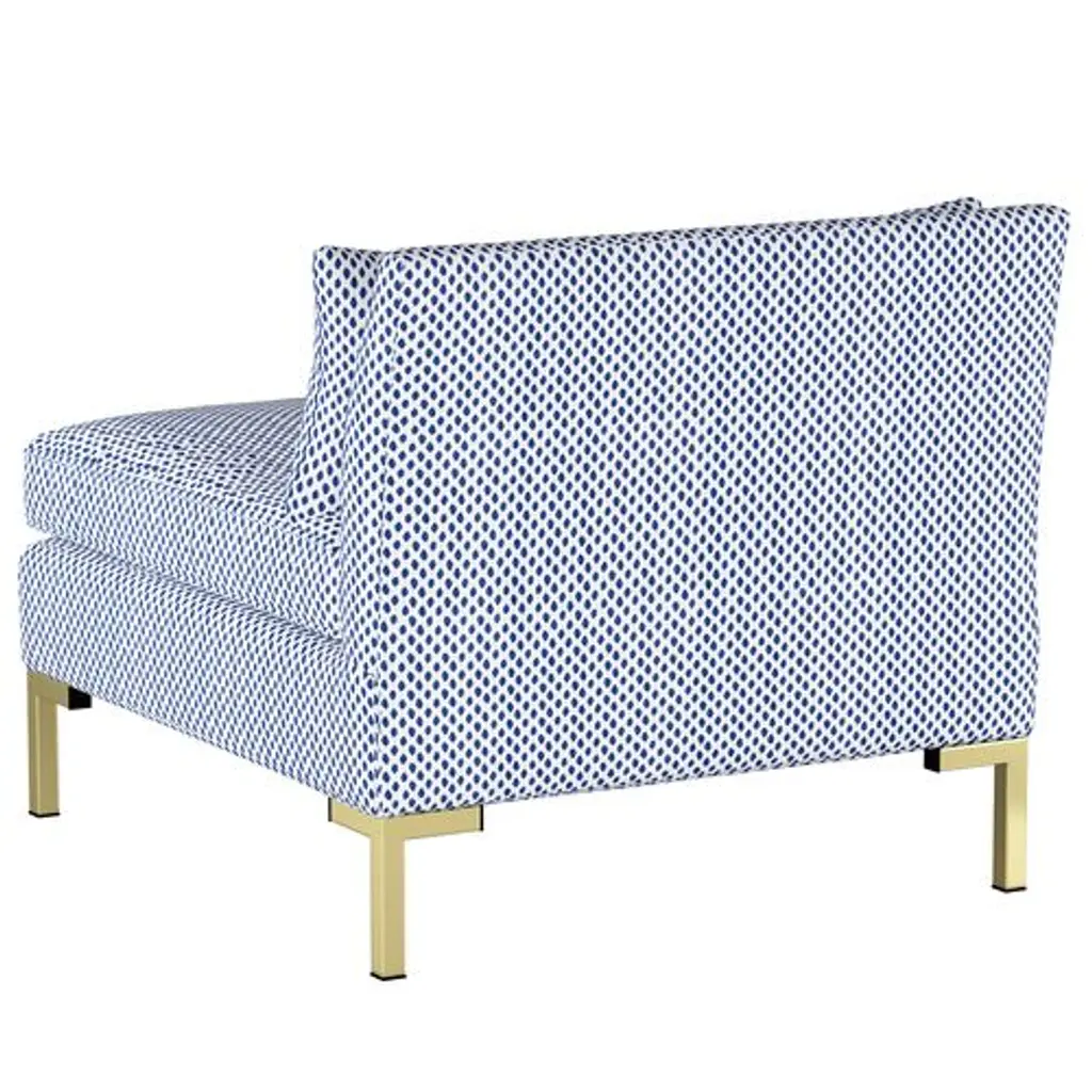 Stylish on its own and also perfect for use as a center module when putting together a sectional, this deep-seated chair is supported by bracket-style legs and upholstered in dotted cotton fabric with a removable and reversible pillow-top seat. A cushy fill provides long-lasting comfort and support. Handcrafted in the USA.