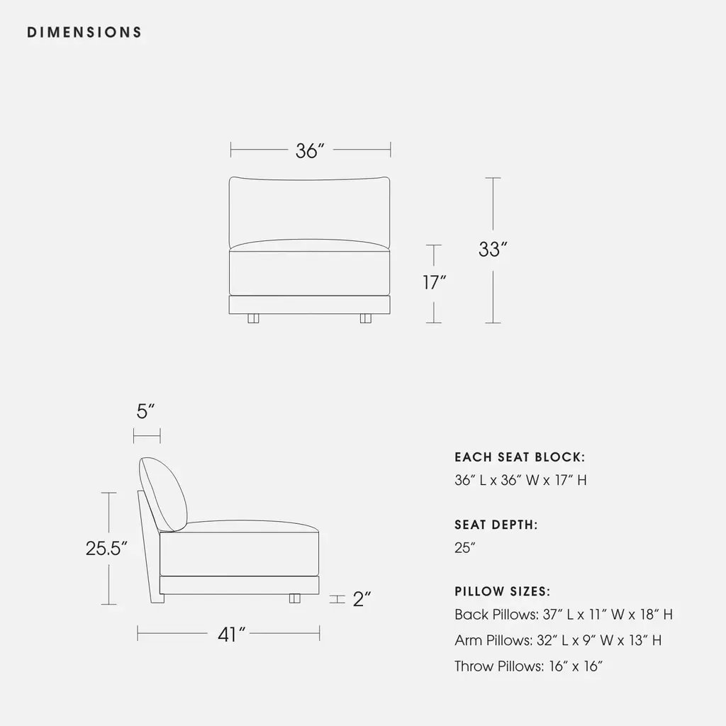 Features Custom Cloud-like Comfort: Oversized cushions, an extra deep seat, a tapered, cradled recline, and a comfort-centric webbing system—Bondi is designed for lavish comfort from the ground up. Choose between our two best selling comfort recipes to find the custom formula that’s right for you. Washable Covers: The entire Bondi Sofa can be undressed and washed with our patent pending design. All fabric covers feature concealed zippers for easy removal and cleaning. Extra slipcovers are available for purchase. Life-Proof Seating: Designed to handle everything from dirty paws to sharp claws, our fabric collection includes high performance options that are Machine Washable, Liquid Repellent, Stain Resistant, & Pet-Friendly. Each pillow is wrapped in a patent pending, water-resistant liner and each seat cushion features moisture-wicking air mesh for additional protection. Modular: Reconfigurable, patent pending modules, made to move and adapt with your ever-changing lifestyle. Designed to fit anywhere—great for small & large spaces alike. Sustainable Craftsmanship: Bondi’s kiln-dried solid ash wood frame is FSC-Certified. Our comfort formulas feature low impact eco-foam that upcycles disposable bottles. One sofa = roughly 400 recycled plastic bottles. All foam is CertiPUR-US®, free of ozone depletors.