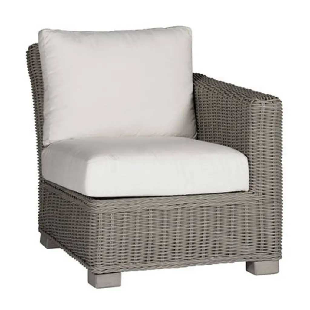 Sturdy, timeless, and built for year-round living, the Rustic Sectional Sofa brings beautiful elegance to any outdoor space. Crafted from weather- and UV-resistant N-dura™ resin wicker over a heavy-gauge aluminum frame, this versatile sofa has an antiqued finish and fine braiding detail for superior quality and style. Use the Rustic Sectional Right as stand-alone seating or create your desired configuration using additional pieces from the Rustic Sectional collection.