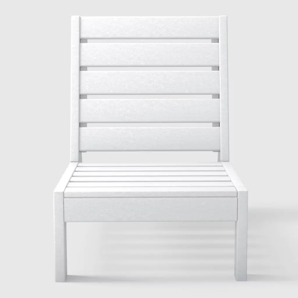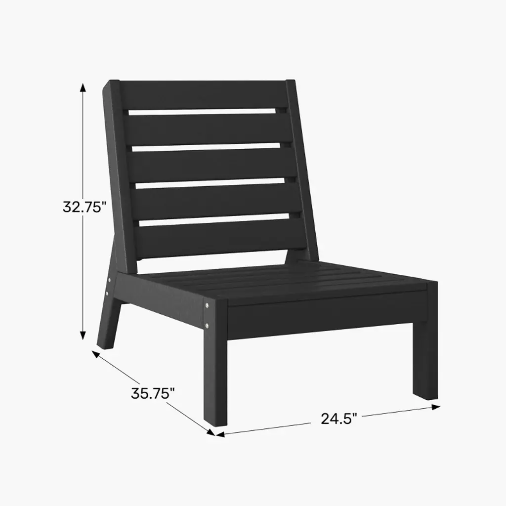 Relax by the poolside or on your patio under the stars with our charming Outdoor HDPE Deep Seating Modular Armless Patio Chair. lounge back in bliss with the deep inclined seat rest and the slanted backrest that offers a relaxing design. our outdoor club chair is a perfect blend of comfort and design with the durable and thick HDPE material that ensures a stable design. turn your backyard into an oasis with this patio sofa chair this season.While we strive to accurately represent product colors, please be aware that actual colors may vary slightly due to individual screen settings and lighting conditions. FeaturesConstructed from robust and environmentally friendly HDPE materialWeather resistant to protect against the harsh outdoor elementsFade and UV resistant to protect against the sunInclined Seat Rest allows you to Slide into ComfortHigh Titled Backrest to Lean Back into Comfort24" Wide Seat Rest for Plenty of Leg RoomDurable and Sturdy Construction with Strong Legs and Thick HDPE SlatsDetails:Product Type: Patio ChairsWhat's Included: (1) Deep Armless SeatDeep Armless SeatDimensions: 24.5" W x 35.75" D x 32.75" HWeight: 43.75 lbs.Seat Width: 24.5"Seat Depth: 24.5"Seat Height: 11.5"Weight Capacity: 330 lbs.