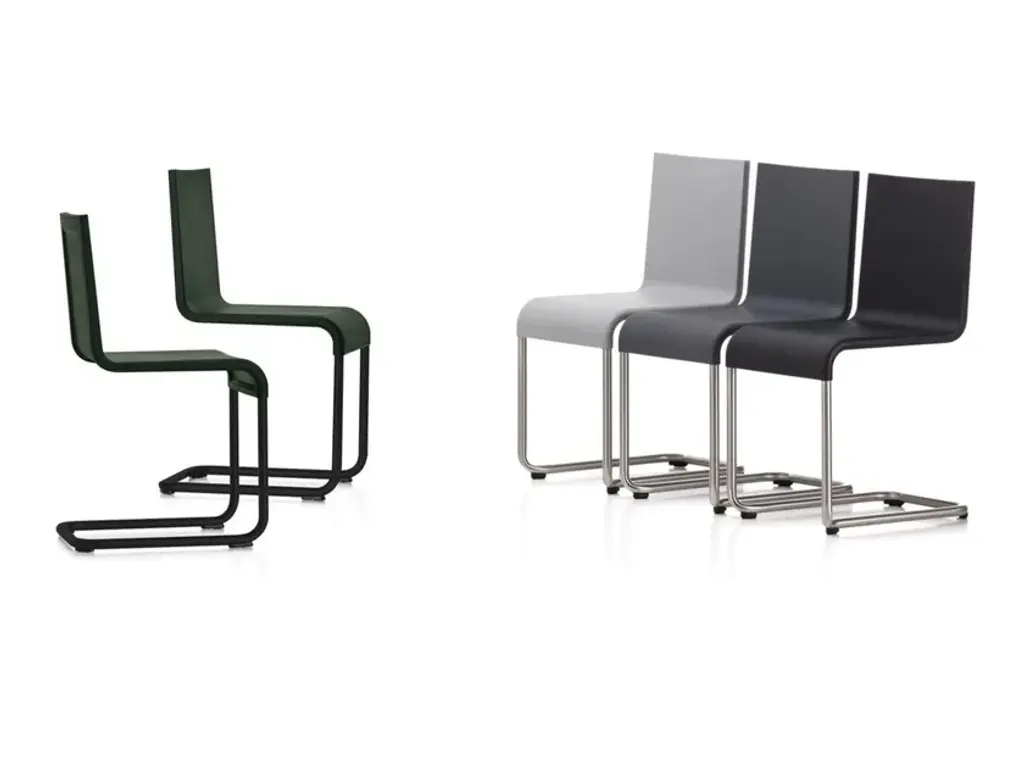 Although the cantilever chair has been a success story for over eighty years, .05 is the first model whose uncompromising form and flexible comfort surpass the archetypal chair without back legs designed by Mart Stam in 1926.The sleek, linear shape of .05 is its aesthetic hallmark, while its construction provides for a comfortable seat. Made of resilient polyurethane integral foam, the shell adapts to the body. When the sitter leans back, the upper part of the backrest yields slightly – a pleasant sensation created by the integrated leaf springs. Together with the typical flexing effect of the cantilever base, this makes .05 surprisingly comfortable – a quality that is fully appreciated only through use.The cantilever base of .05 is made of stainless steel, making the chair suitable for outdoor use as well. The .05 chair is also available in a stacking version.Materials:- Seat shell: cantilever chair with seat shell made of integral skin polyurethane foam. Shell with upholstered effect, self-supporting on a tubular stainless steel frame. Flexible backrest with integrated leaf springs.- Base: stainless steel with satin finish. Fitted with plastic glides for carpet or felt glides for hard floors.- Suited for outdoor use.- Note: special additives retard the fading of colours due to UV radiation. However, if the chair is exposed to sunlight for prolonged periods, the colour may change over time. We recommend limited exposure to sunlight.