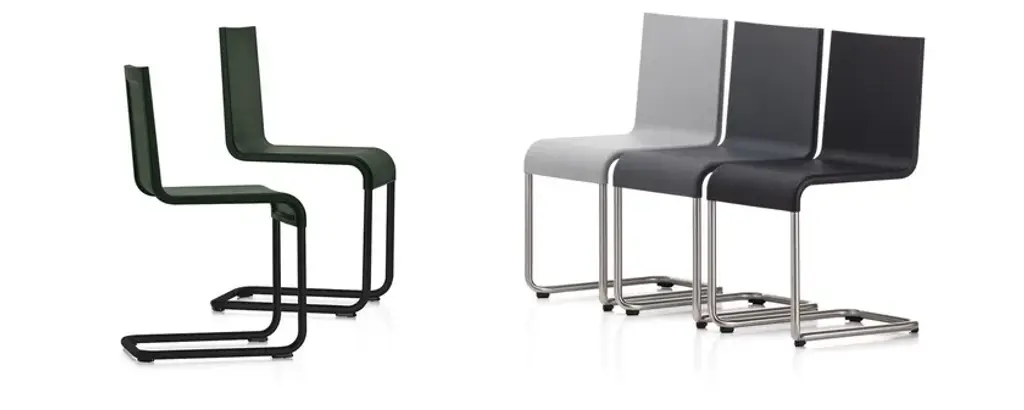 Although the cantilever chair has been a success story for over eighty years, .05 is the first model whose uncompromising form and flexible comfort surpass the archetypal chair without back legs designed by Mart Stam in 1926.The sleek, linear shape of .05 is its aesthetic hallmark, while its construction provides for a comfortable seat. Made of resilient polyurethane integral foam, the shell adapts to the body. When the sitter leans back, the upper part of the backrest yields slightly – a pleasant sensation created by the integrated leaf springs. Together with the typical flexing effect of the cantilever base, this makes .05 surprisingly comfortable – a quality that is fully appreciated only through use.The cantilever base of .05 is made of stainless steel, making the chair suitable for outdoor use as well. The .05 chair is also available in a stacking version.Materials:- Seat shell: cantilever chair with seat shell made of integral skin polyurethane foam. Shell with upholstered effect, self-supporting on a tubular stainless steel frame. Flexible backrest with integrated leaf springs.- Base: stackable (max. 5 chairs) base in stainless steel with satin finish. Fitted with plastic glides for carpet or felt glides for hard floors.- Suited for outdoor use.- Note: special additives retard the fading of colours due to UV radiation. However, if the chair is exposed to sunlight for prolonged periods, the colour may change over time. We recommend limited exposure to sunlight.