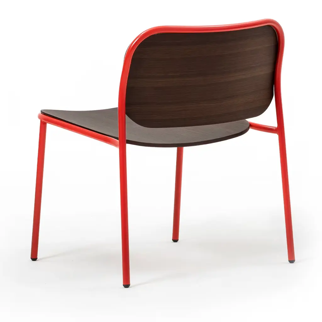 The encounter between heat-treated oak and tubular metal gave birth to this original chair by Studio Gabbertas. Brimming with a timeless style, the design has its oak back and seat marked by rounded corners, curves traced by the metal structure lacquered in a bright red hue (RAL 3020). Please consult the Concierge for details on light oak, black, aniline, or ash variants.