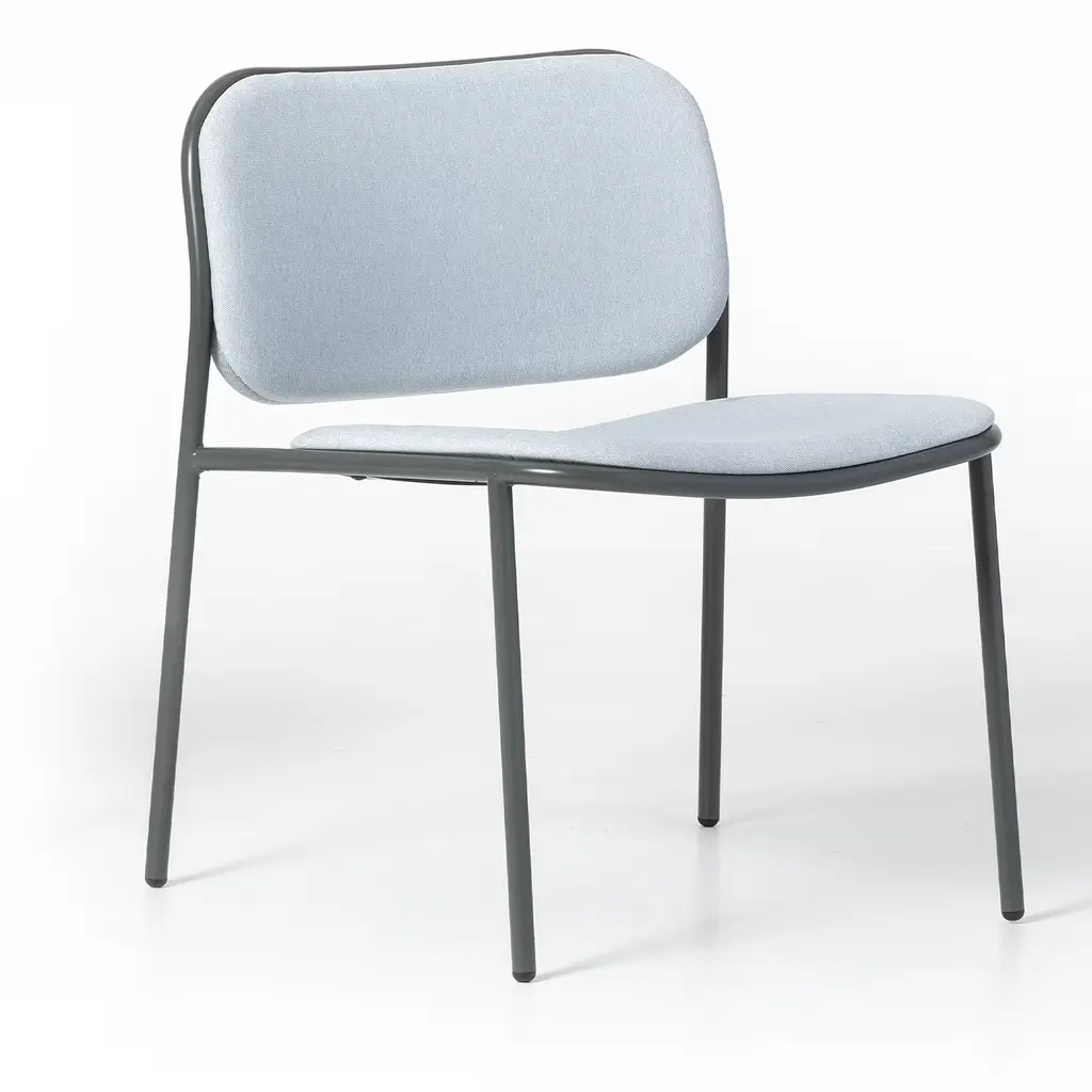 An essential silhouette softened by smooth curves defines the quiet character of this chair designed by Studio Gabbertas to perfectly complement waiting areas in professional contexts. Lacquered in gray (RAL 7043), the cylindrical metal structure ensures sturdiness and lightness, for a design that is sure to whit stand the test of time. An armchair counterpart is also available, please contact the Concierge for details.