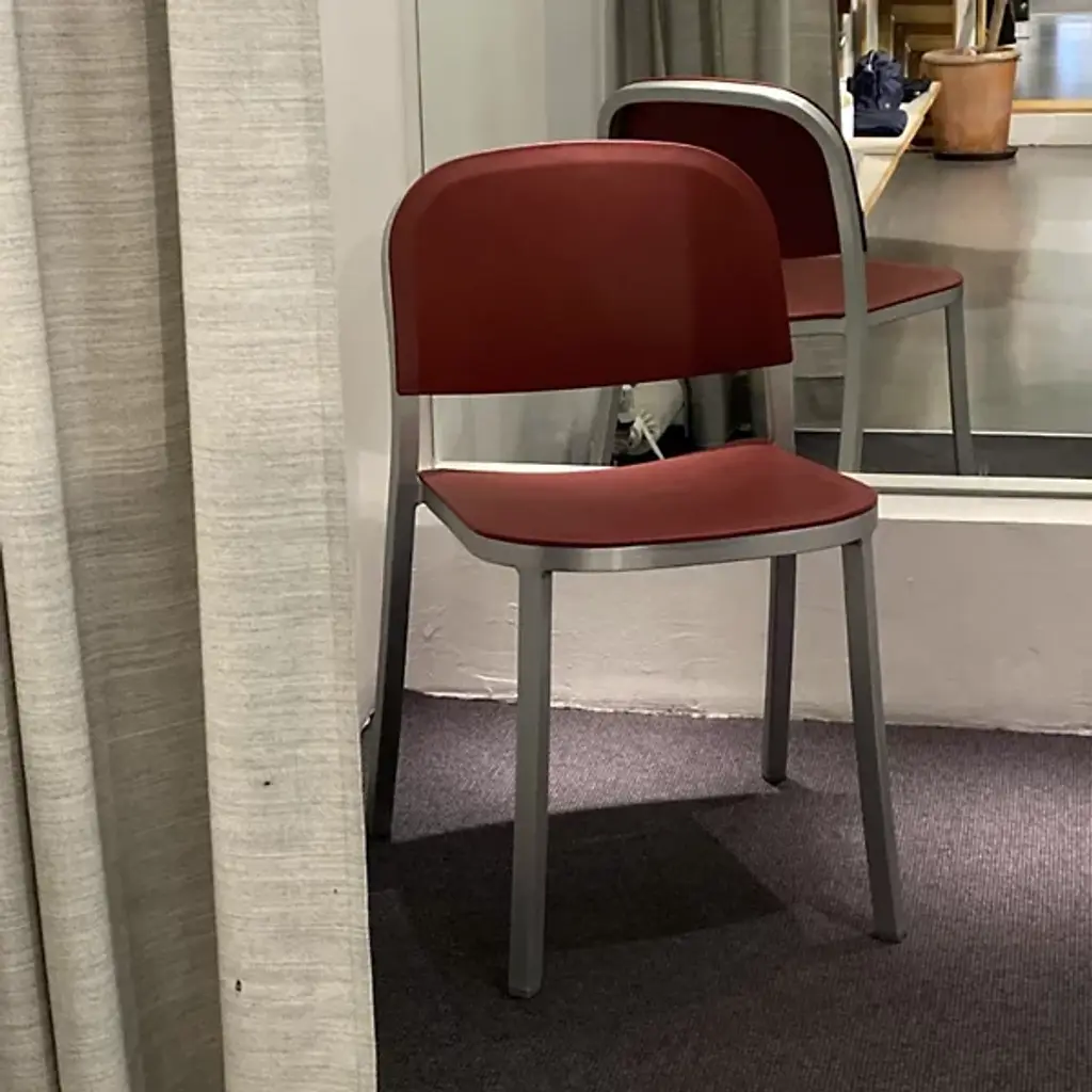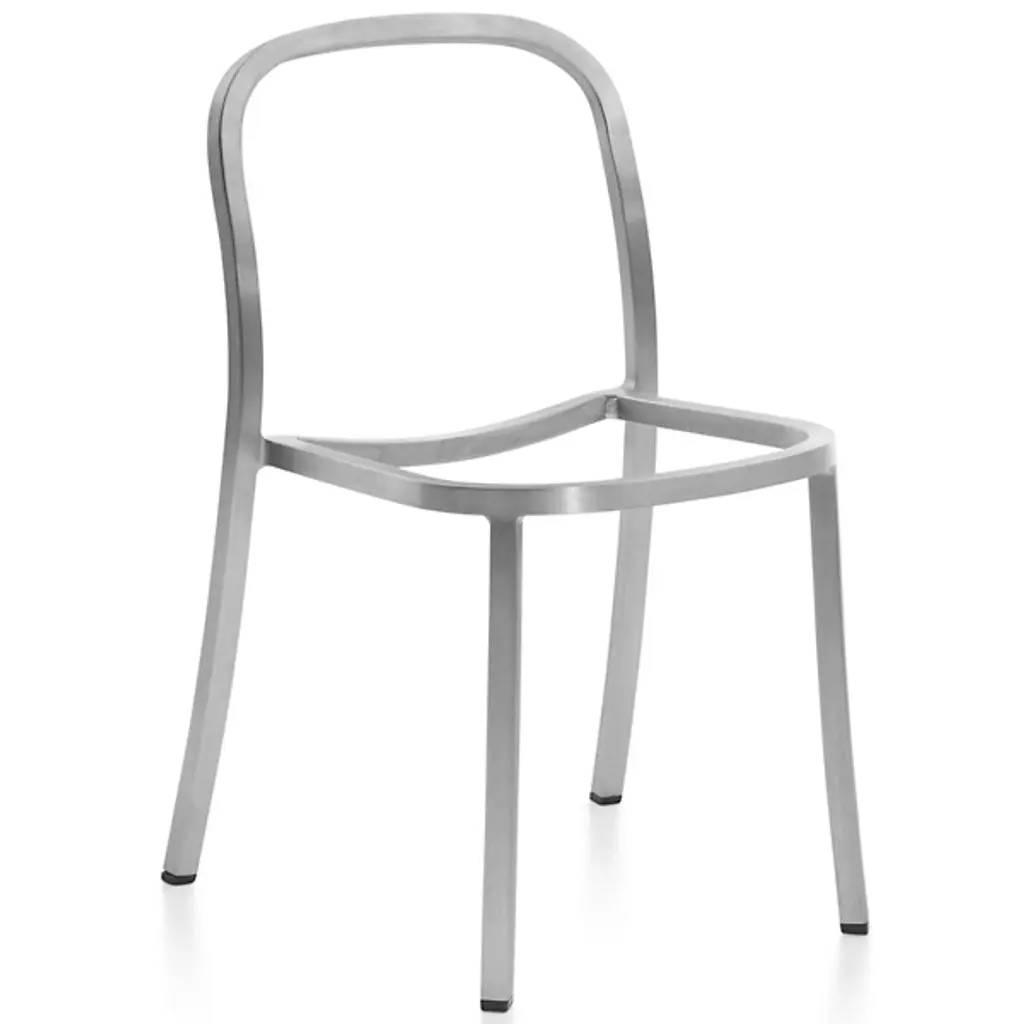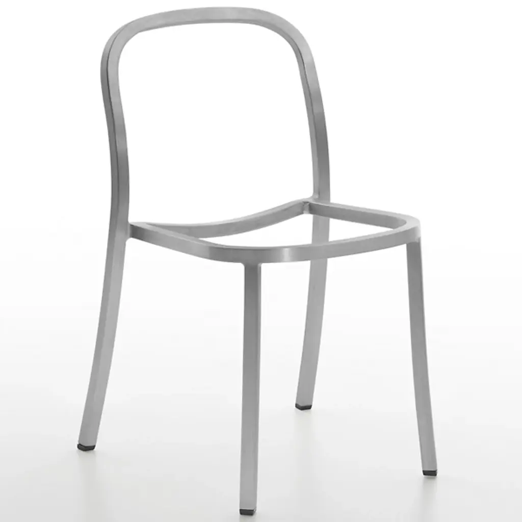 Pull up the 1 Inch Stacking Chair by Emeco and you'll see it stands out for its simplicity and strength. Handcrafted of recycled aluminum, it’s sturdy, lightweight and ideal for eating areas or offices. The slightly curved backrest and seat make sitting at a table or desk comfortable. It conveniently stacks six chairs high for effortless storage and mobility. With its timeless design and a choice of seats, this furniture is perfect for contemporary spaces.