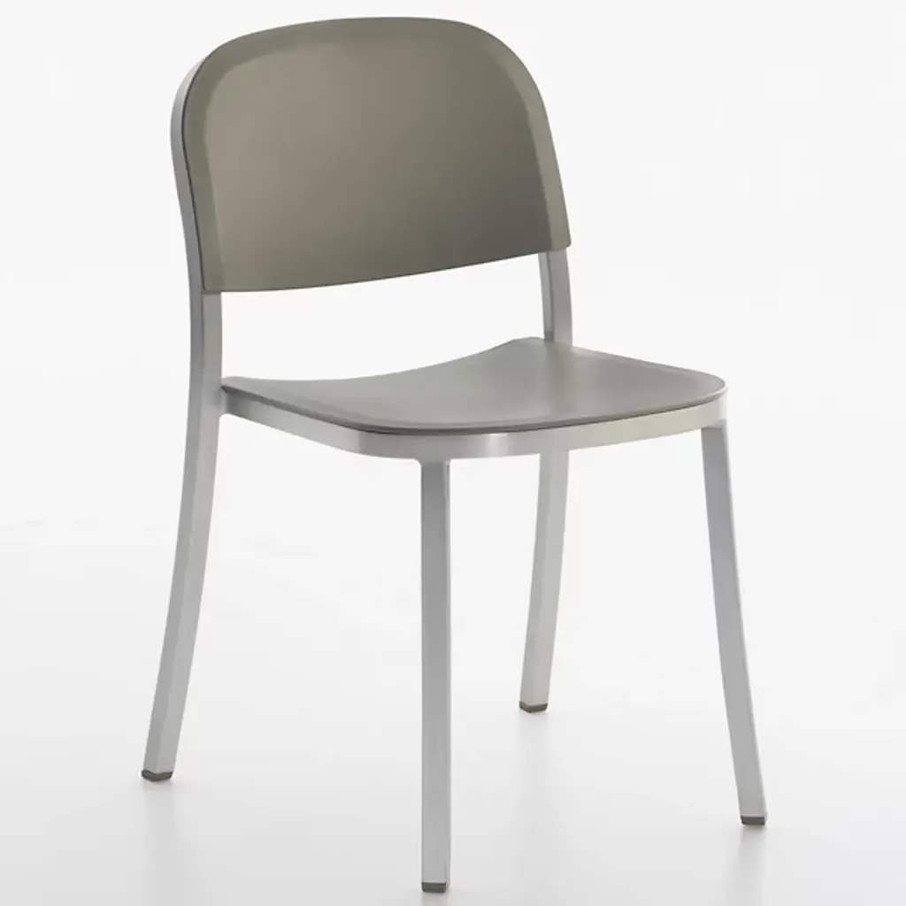 Pull up the 1 Inch Stacking Chair by Emeco and you'll see it stands out for its simplicity and strength. Handcrafted of recycled aluminum, it’s sturdy, lightweight and ideal for eating areas or offices. The slightly curved backrest and seat make sitting at a table or desk comfortable. It conveniently stacks six chairs high for effortless storage and mobility. With its timeless design and a choice of seats, this furniture is perfect for contemporary spaces.
