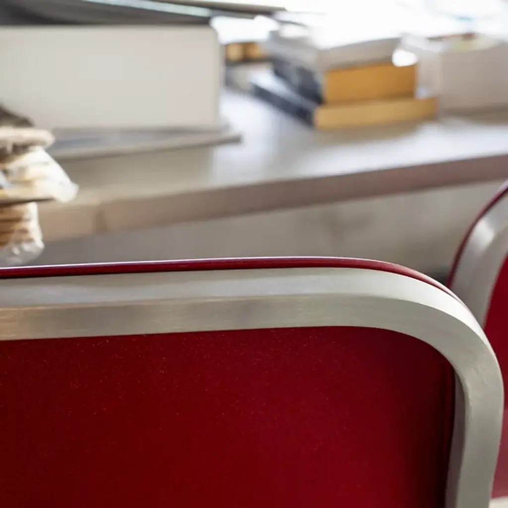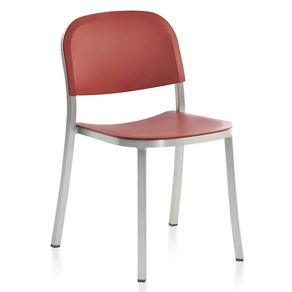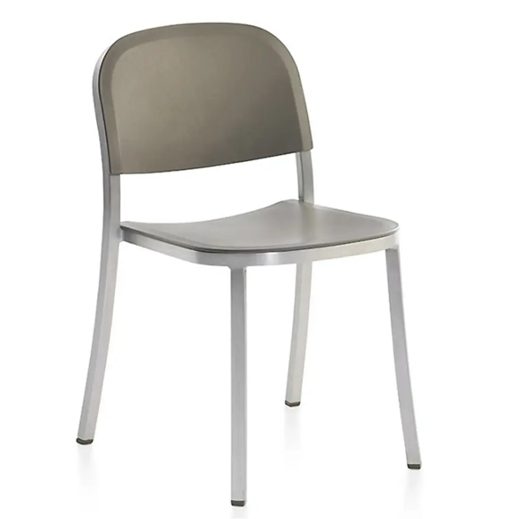 Pull up the 1 Inch Stacking Chair by Emeco and you'll see it stands out for its simplicity and strength. Handcrafted of recycled aluminum, it’s sturdy, lightweight and ideal for eating areas or offices. The slightly curved backrest and seat make sitting at a table or desk comfortable. It conveniently stacks six chairs high for effortless storage and mobility. With its timeless design and a choice of seats, this furniture is perfect for contemporary spaces.