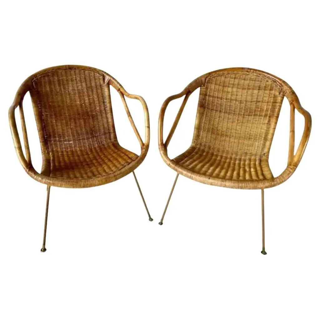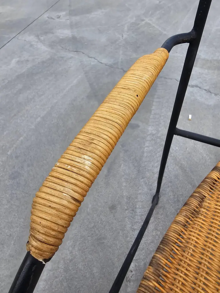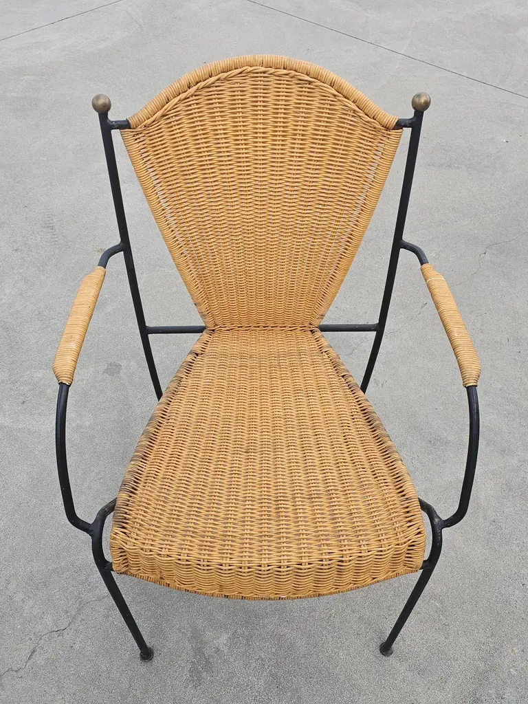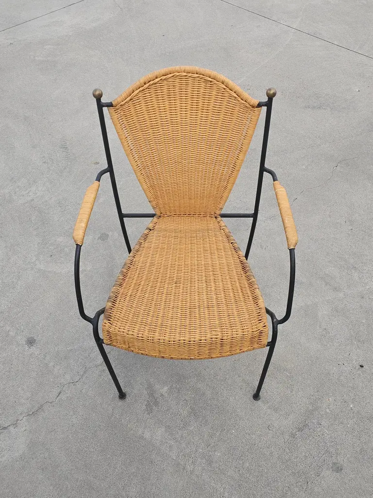 1 Of 22 Mid Century Chair By Frederic Weinberg In Wicker, Iron And Brass