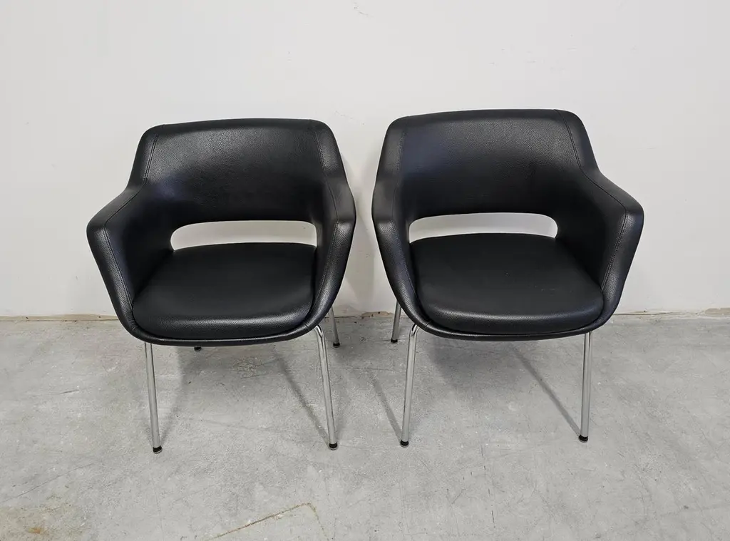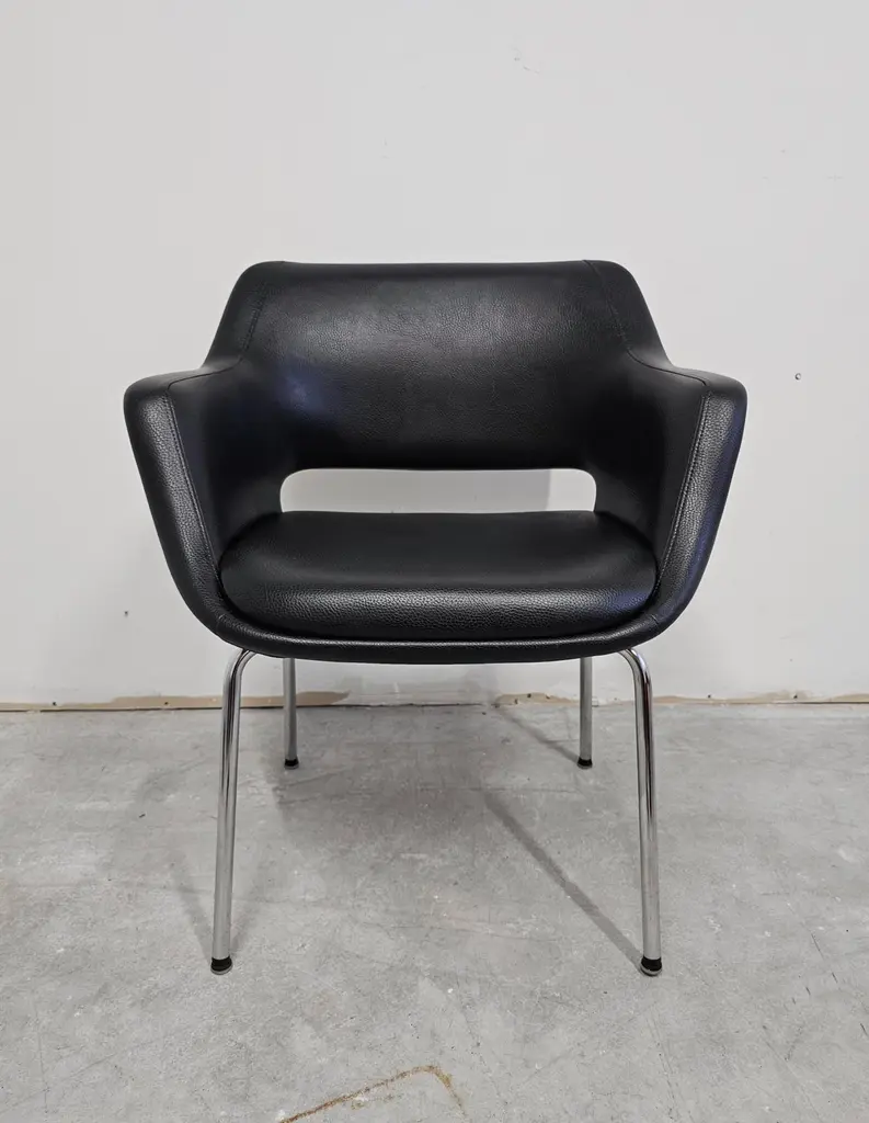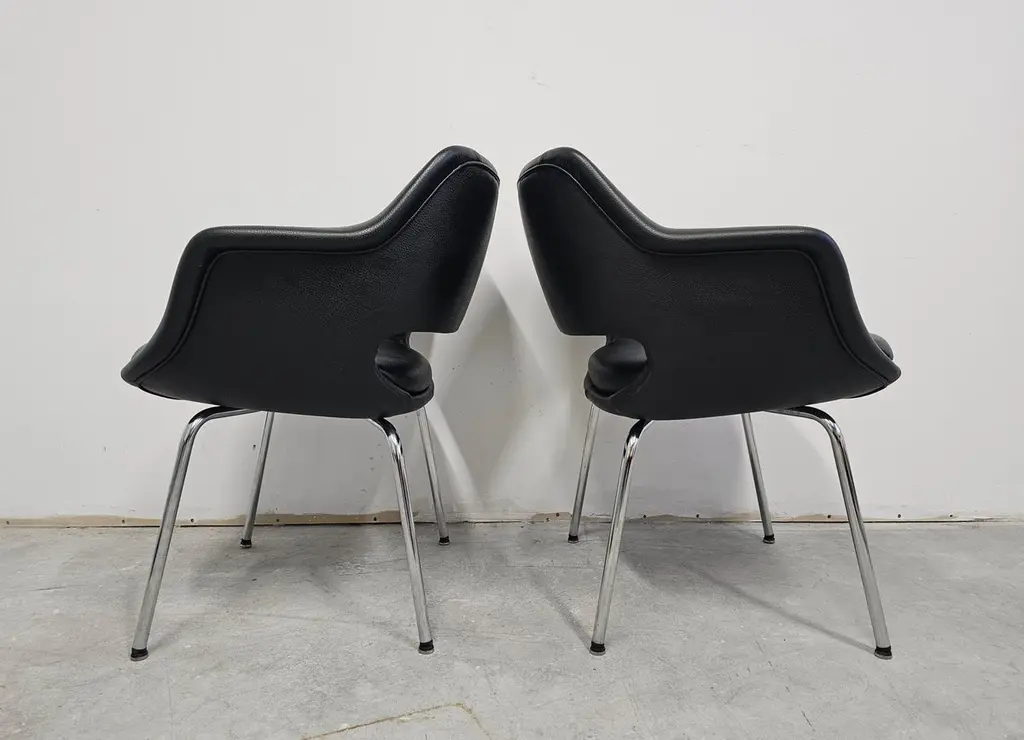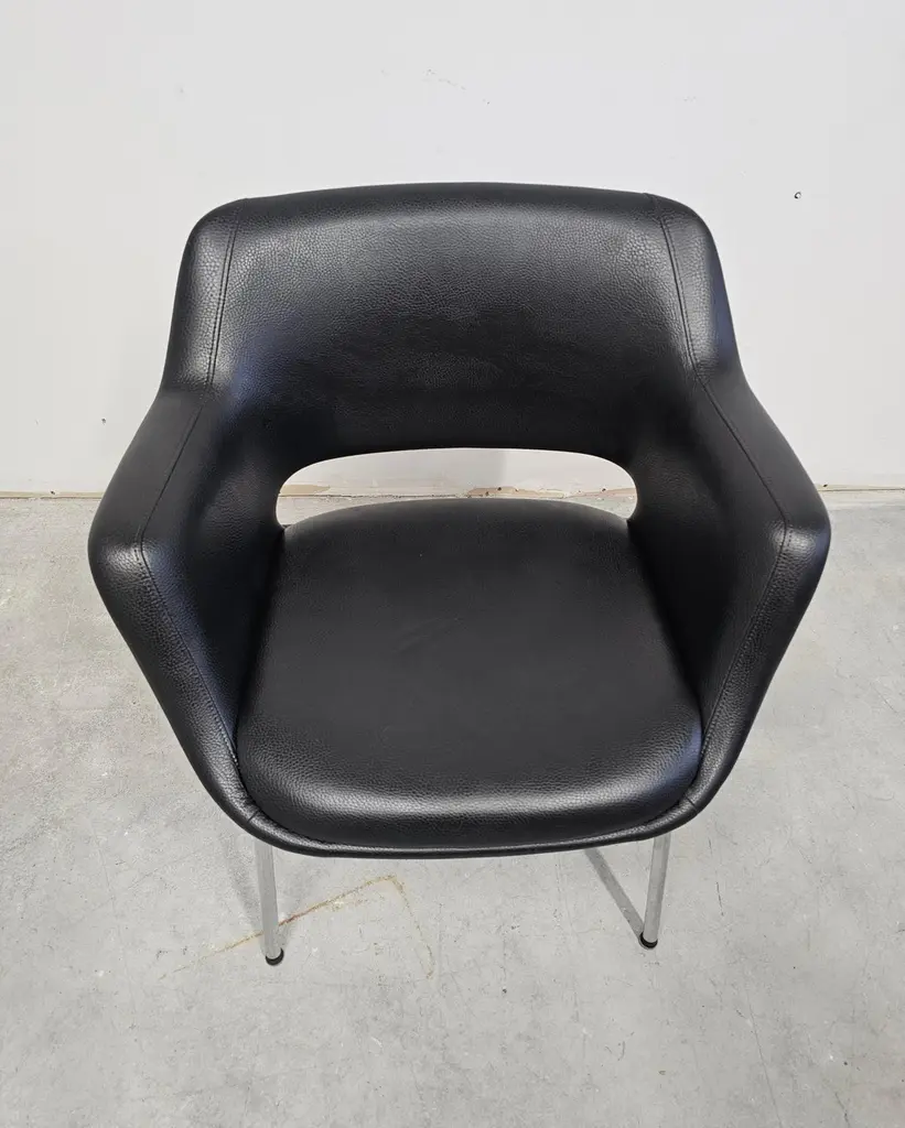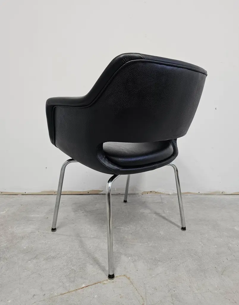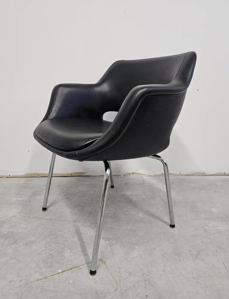 In this listing you will find an elegant and sleek Kilta armchair done in black leather and chrome plated steel. It was designed by Finnish designer Olli Mannermaa for Martela in Italy. The Kilta chair is a Finnish design Classic. Kilta’s timeless design and very comfortable seating guarantee its continuing popularity. It is a popular vintage product from the Mid-Century modern era, a testimony to its quality, durability and timelessness. Designed in 1955 in Italy. Manufactured in 1970s.Very good vintage condition with very few signs of time and use.10 chairs available.When purchased the chairs will be carefully wrapped up and packed in a way to avoid any damages in transport. As soon as shipped you will receive the tracking number for your package. If you have any additional questions regarding this piece please feel free to contact me. Happy shopping!
