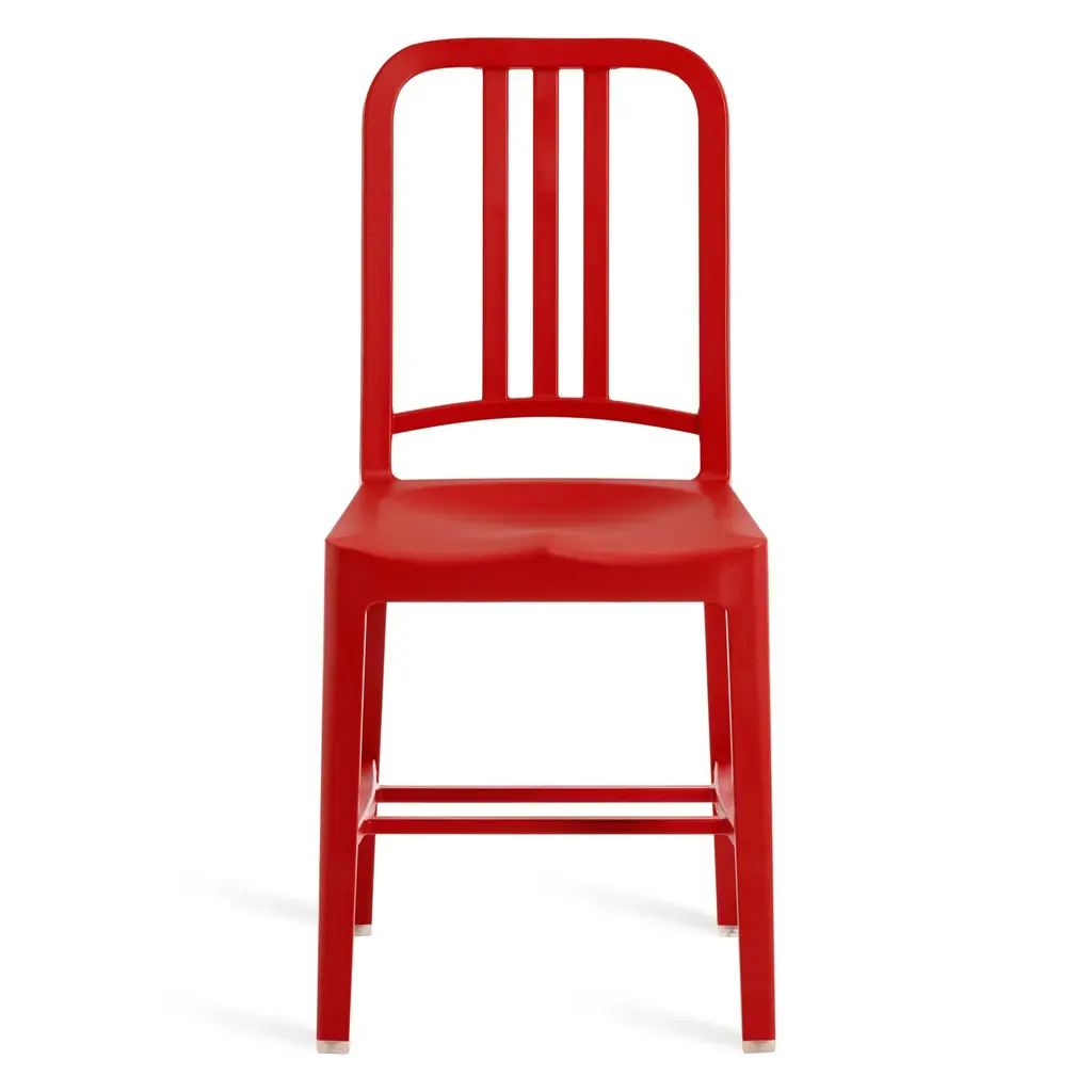Originally designed for use on WWII submarines, today's 111 Navy Chair is an innovative collaboration between Coca-Cola and Emeco, Solving an environmental problem of the discarding of plastic soda bottles that pollute our environment, 111 discarded PET bottles are utilized towards the creation of the Navy Chair, saving millions of Coca-Cola bottles from the landfill each year. Crafted right here in the United States and built to last a lifetime, the simple silhouette and variety of colorful finishes let you effortlessly match to fit your interior needs. Highlights