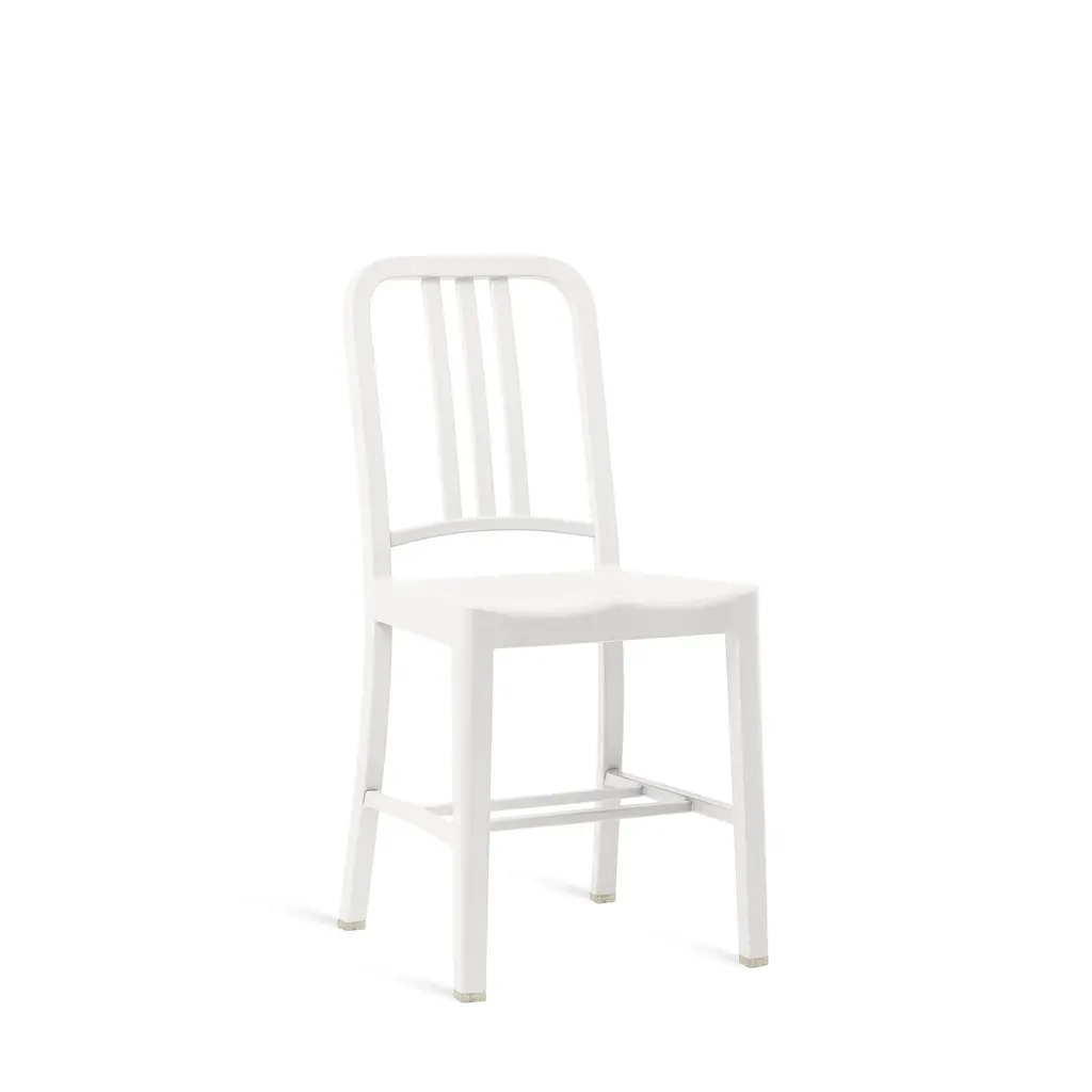 111 Navy by Emeco, 2010 111 Navy Chair ® is the first ever chair made from recycled plastic bottles. Each chair is made from at least 170 waste plastic bottles. Made in the USA and built to stand up to tough use. All colors are outdoor approved. For Quick Ship, a maximum order quantity of 30 pieces applies.