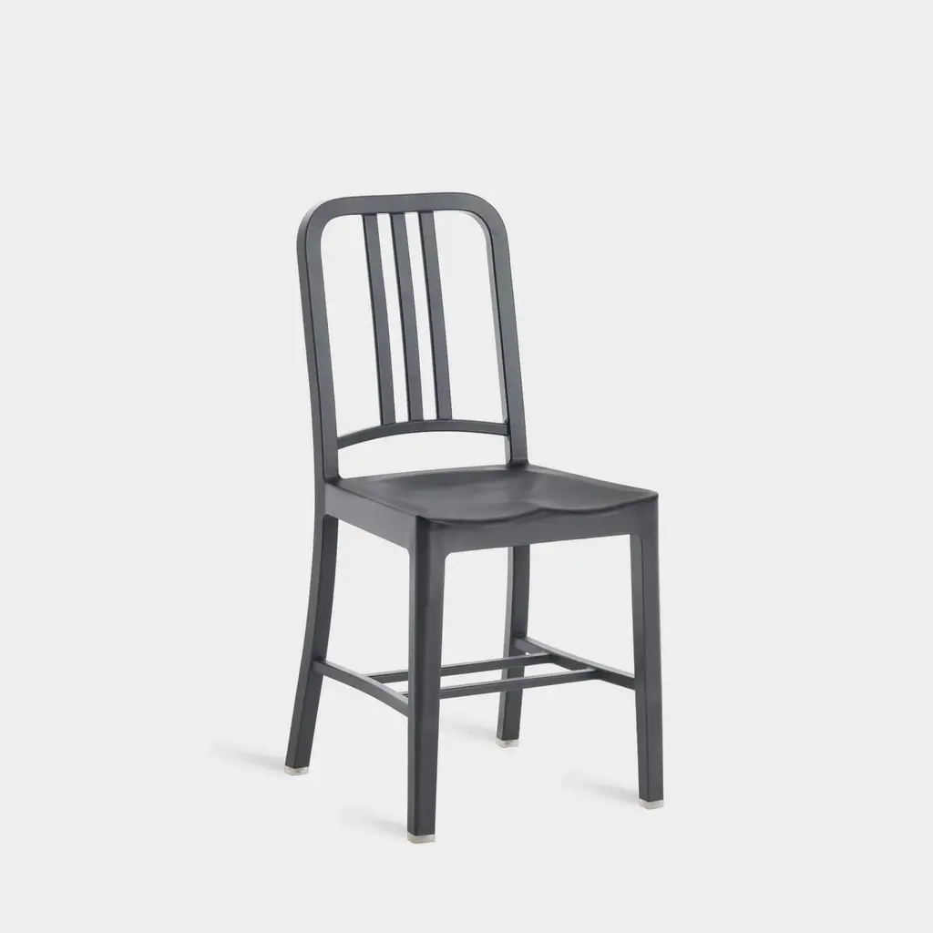 111 Navy by Emeco, 2010 111 Navy Chair ® is the first ever chair made from recycled plastic bottles. Each chair is made from at least 170 waste plastic bottles. Made in the USA and built to stand up to tough use. All colors are outdoor approved. For Quick Ship, a maximum order quantity of 30 pieces applies.