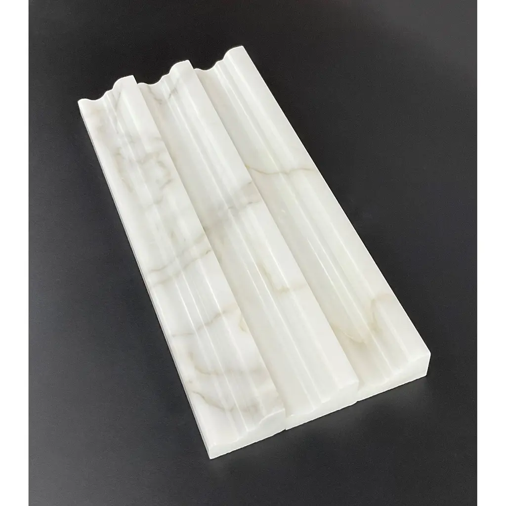 Material: Marble Style: Crown MoldingColor: Calacatta Gold Size: 12" L x 1.75" H x 1" D Overall Product Weight: 1.5 lb. Sold In Carton: Yes (6 Pieces) Shade Variation: V3 Moderate Variation Finish: Polished Mounting / Installation Location: Backsplash; Bathroom; Shower; Fireplace Surround; Wall This is a natural marble mosaic tile. Regular stone sealing is required, and non-sanded grout must be used.