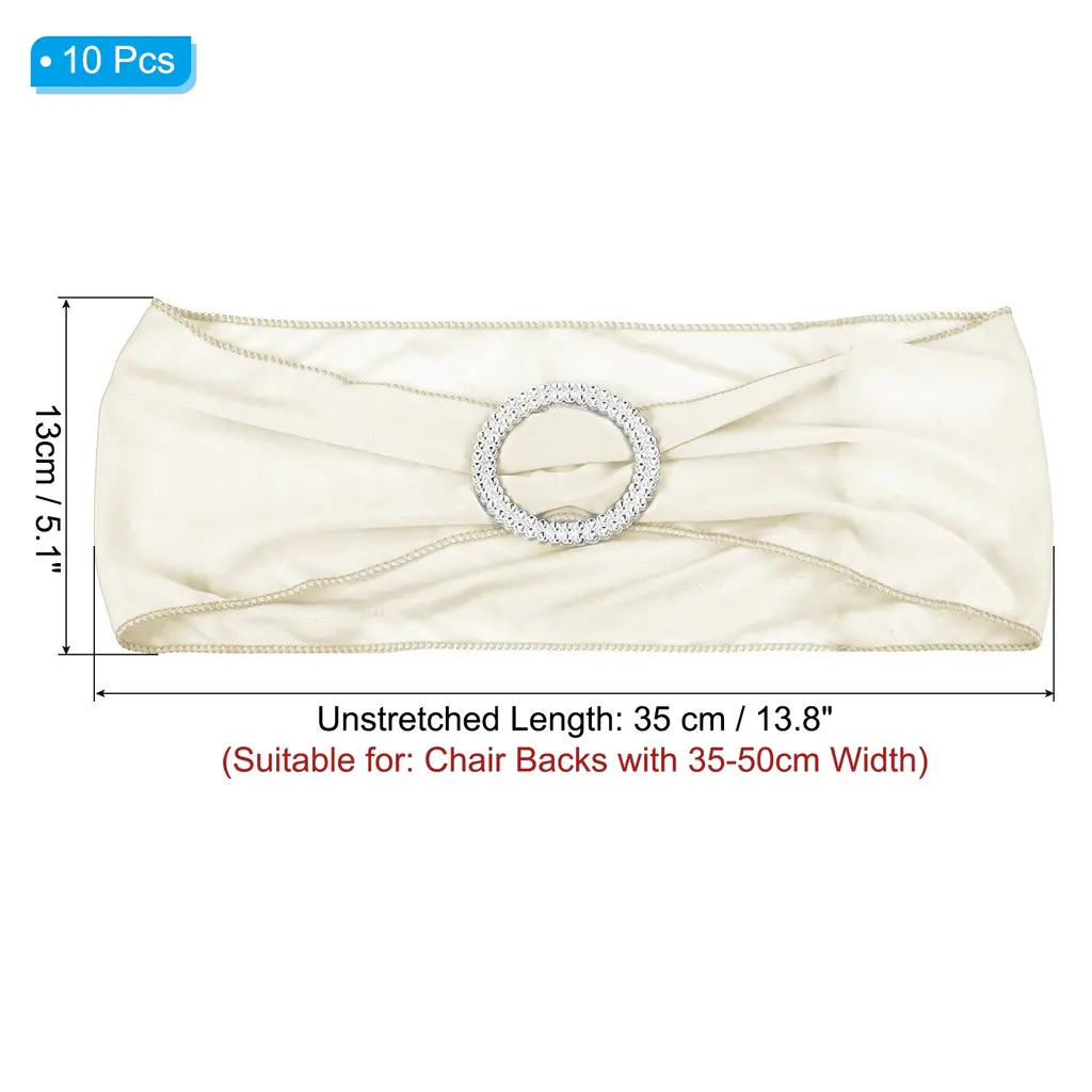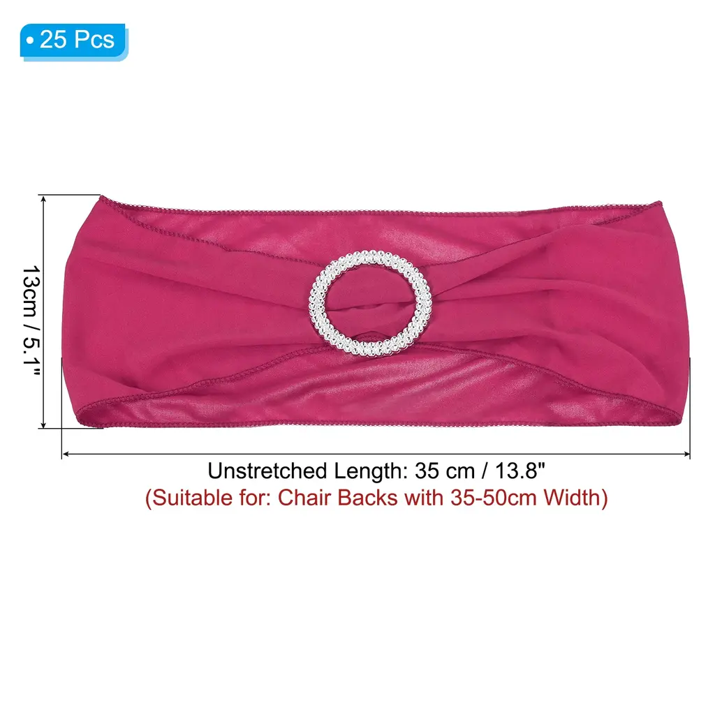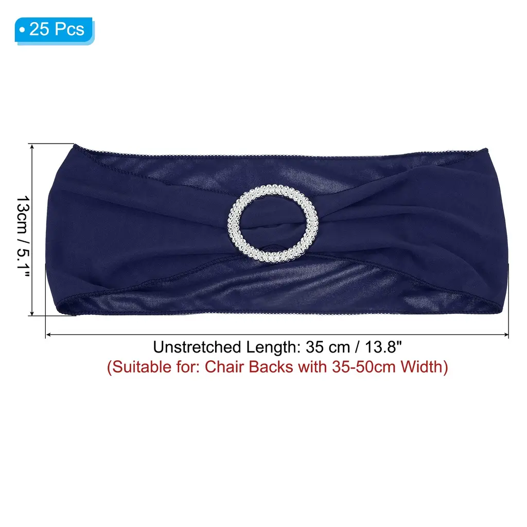 Banquet chair sash fits banquet chairs and folding chairs decorations for weddings, parties, celebrations, graduations, special events, and banquet events, makes the chair more tidy and beautiful, and is great for party decorations.SpecificationMaterial: PolyesterSuitable for: Chair Backs with 35-50cm WidthUnstretched Size: 35 x 13 cm / 13.8 x 5.1 inch (L*W)Packing List: 10 or 25 pcs x Stretch Chair Sashes BowsAdvantageThe chair belt is made of polyester material, flat and straight, not easy to shrink or deform after washing, and easy to wash and dry. Edges are stitched to prevent fraying.With a sliding buckle, the chair waistband can form folds into a design. The vibrant solid color design adds sophisticated elegance to gifts, crafts, or banquet halls.InstructionThe elastic band of the chair cover does not need to be tied with a bow, it only needs to be stretched on the chair cover, which is convenient to use.NOTE: Please make sure the size is correct before placing an order.