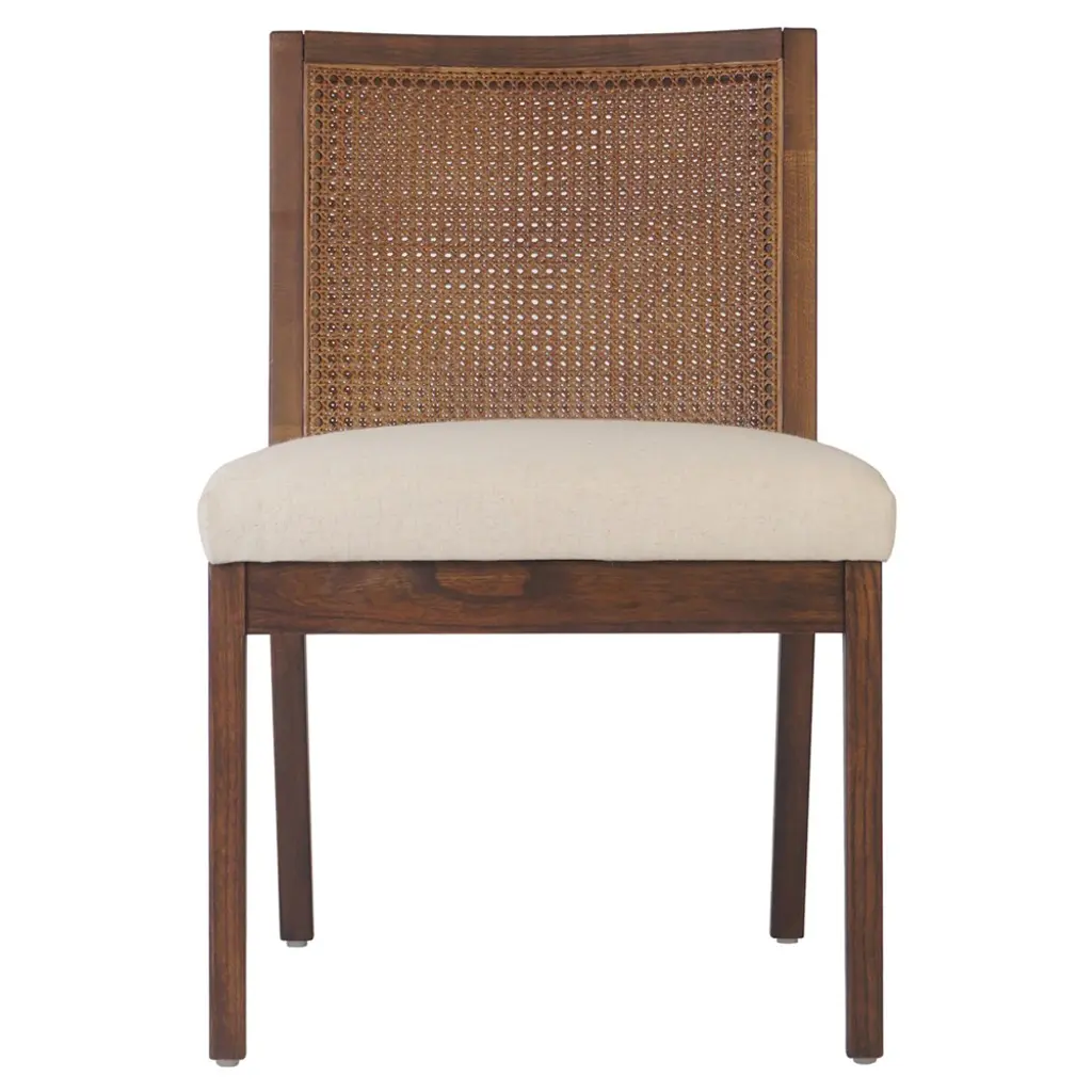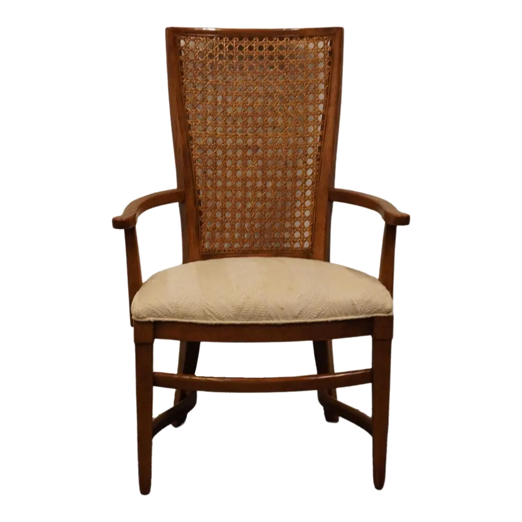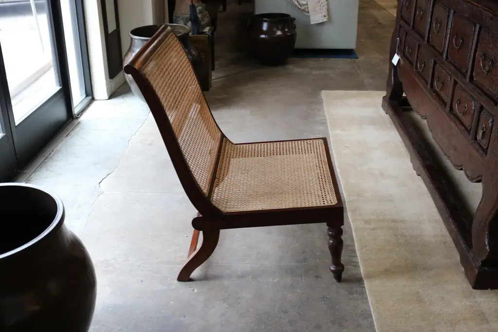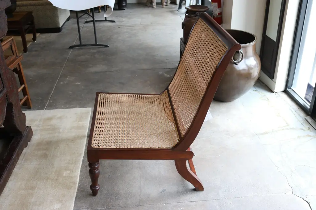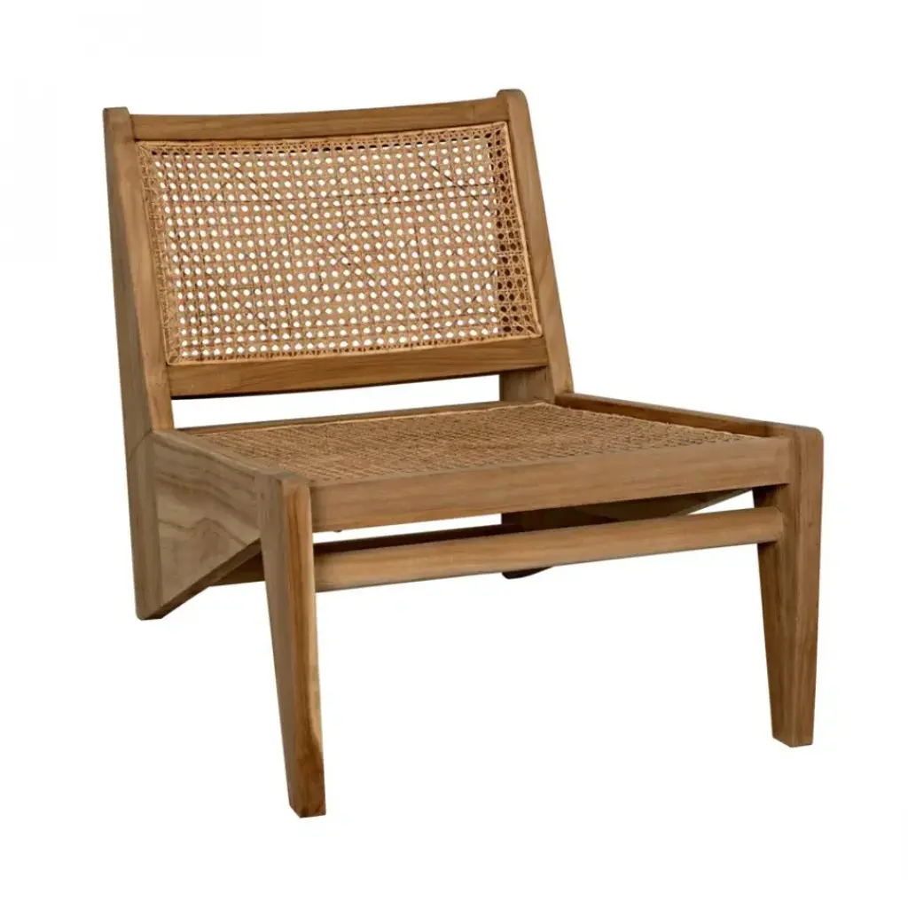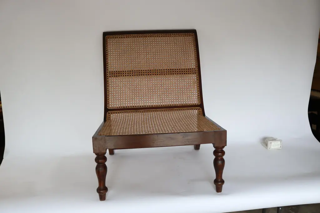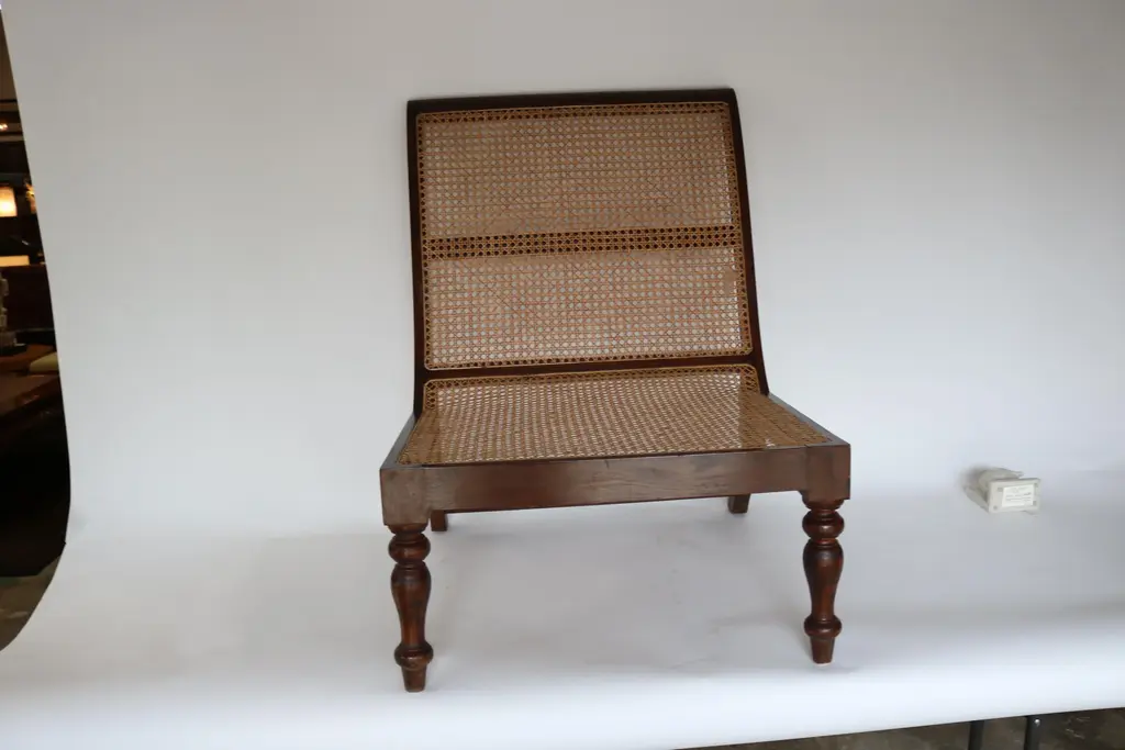 Teak wood chair with ratan back and seat. Low chair with wide seat.